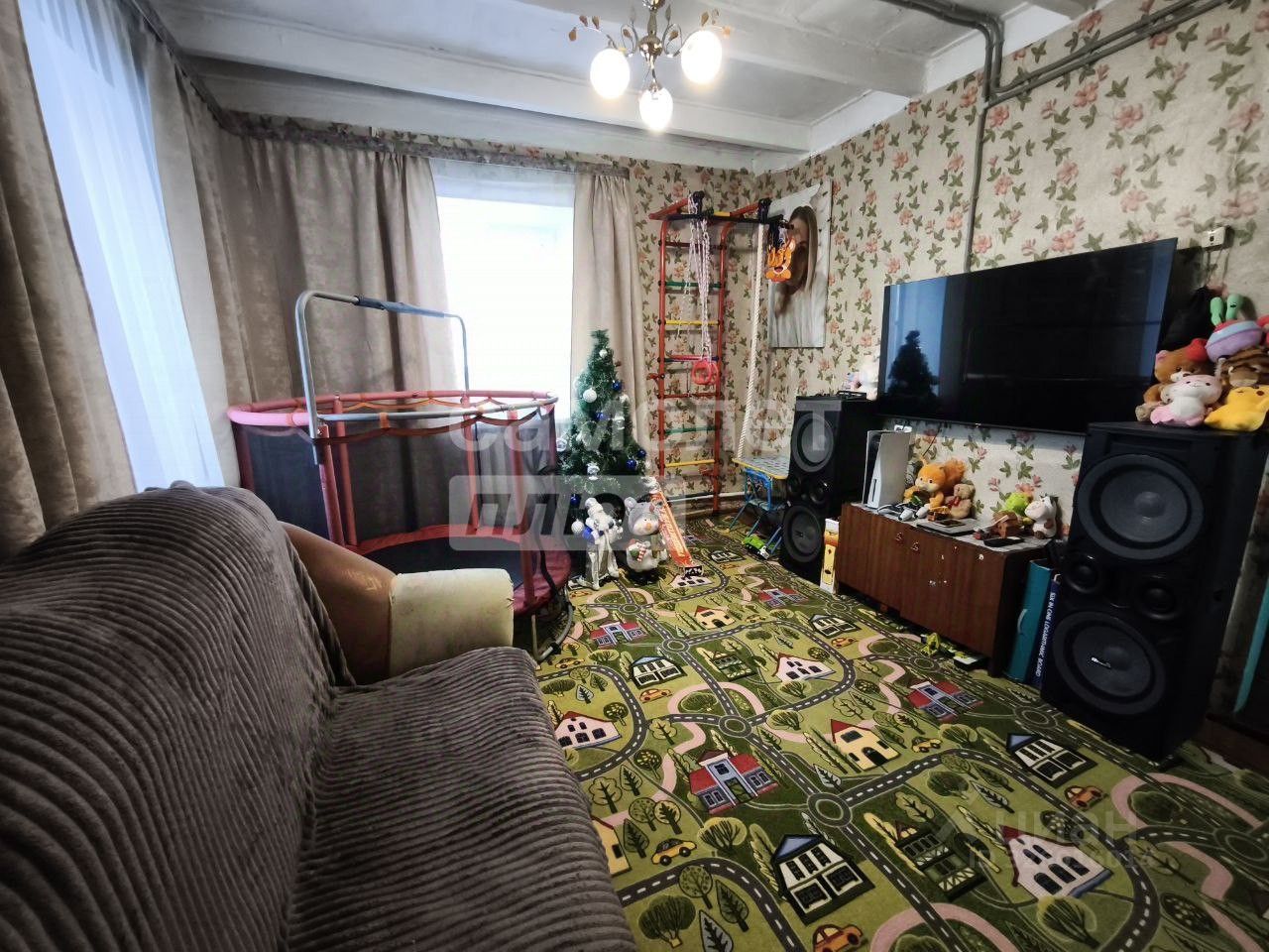 В доме три жилые комнаты и кухня.