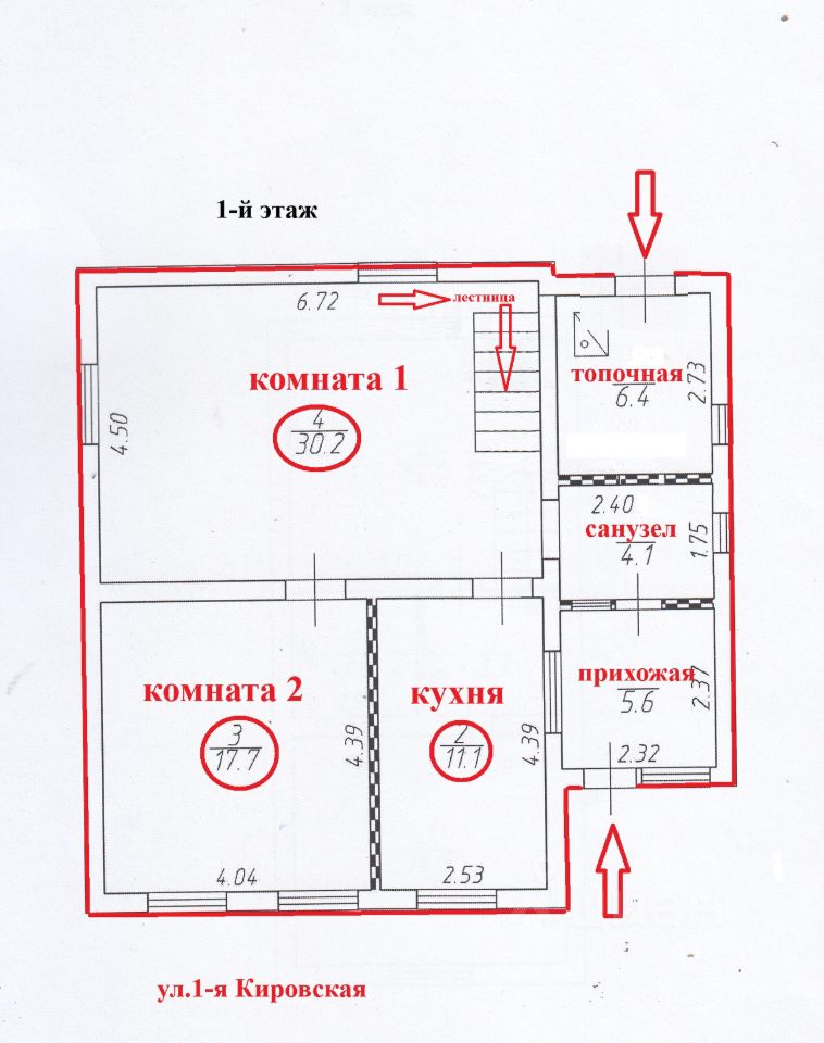ПЛАНИРОВКА: большой зал - 30,2кв.м., 3 комнаты (изолированные) - 46,2кв.м, просторная кухня -11,1кв.м., санузел совмещенный, топочная (в топочную вход индивидуальный с улицы).