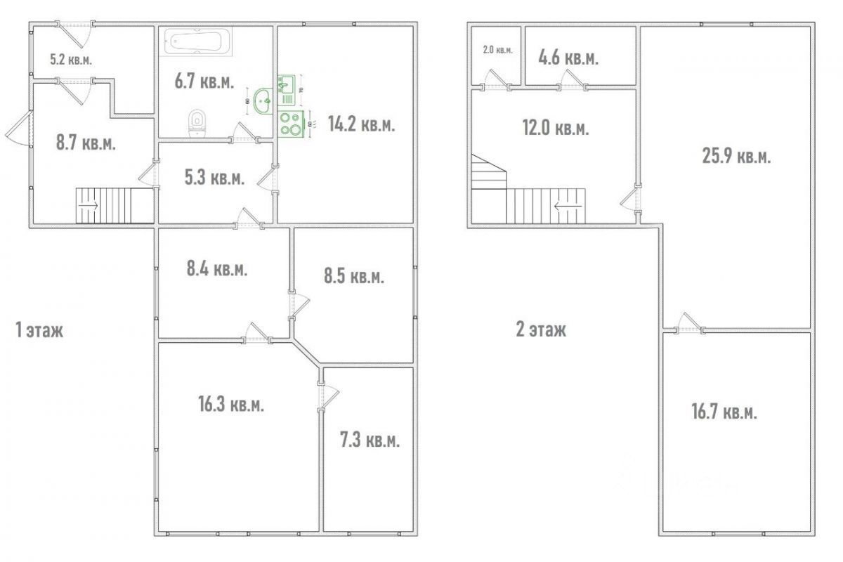 Этот дом — настоящий оазис пространства для вашей семьи. Площадь почти 150 кв. м распределена на два этажа, где у каждого члена семьи будет своё любимое место. На первом этаже — четыре комнаты и кухня-гостиная, где вы сможете собираться за общим обедом или уютным вечером. Второй этаж с высокими потолками и большим окном в пол в спальне открывает простор для детских игр, творчества и отдыха родителей — здесь можно обустроить отдельную спальню и уютную гостиную зону.