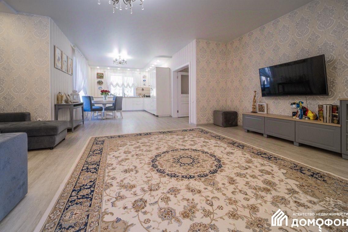 На участке в 10 соток земли размещен дом площадью 189 м² + более 100 м² (на полноразмерном цокольном этаже), где вы можете заниматься спортом, отдыхать в кругу семьи и встречать друзей