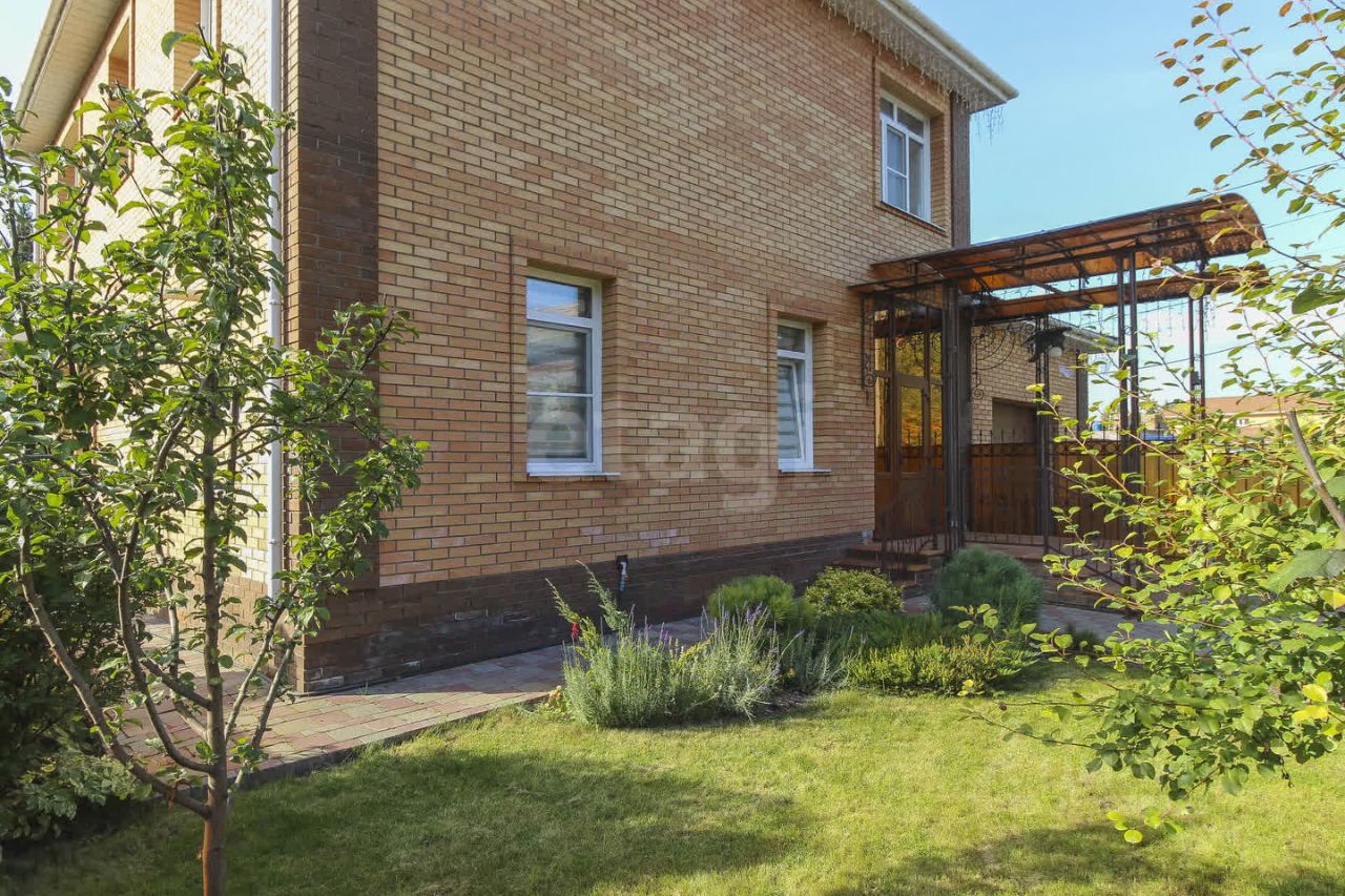 Территория вокруг дома выложена плиткой, участок имеет правильную форму и четко продуманный план озеленения. Теплица, мангальная зона, шикарный газон с голландской травой предназначен для спортивных игр и отдыха. Имеется отдельная площадка для установки разборного бассейна. Перед домом растут многолетние деревья, создавая атмосферу уюта и спокойствия. По периметру крыши установлена неоновая программируемая подсветка, которая выгодно выделяет дом в темное время суток и создает дополнительное освещение. Входная группа с крыльцом имеет индивидуальное решение с использованием металлических конструкций.
