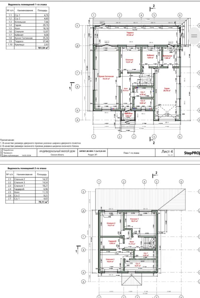 Второй этаж: три изолированные спальни, гардероб, два санузла.