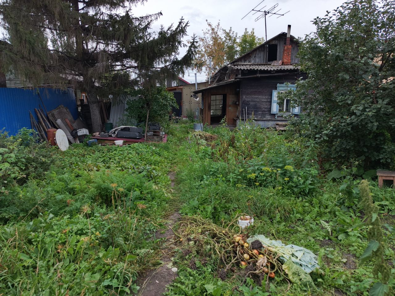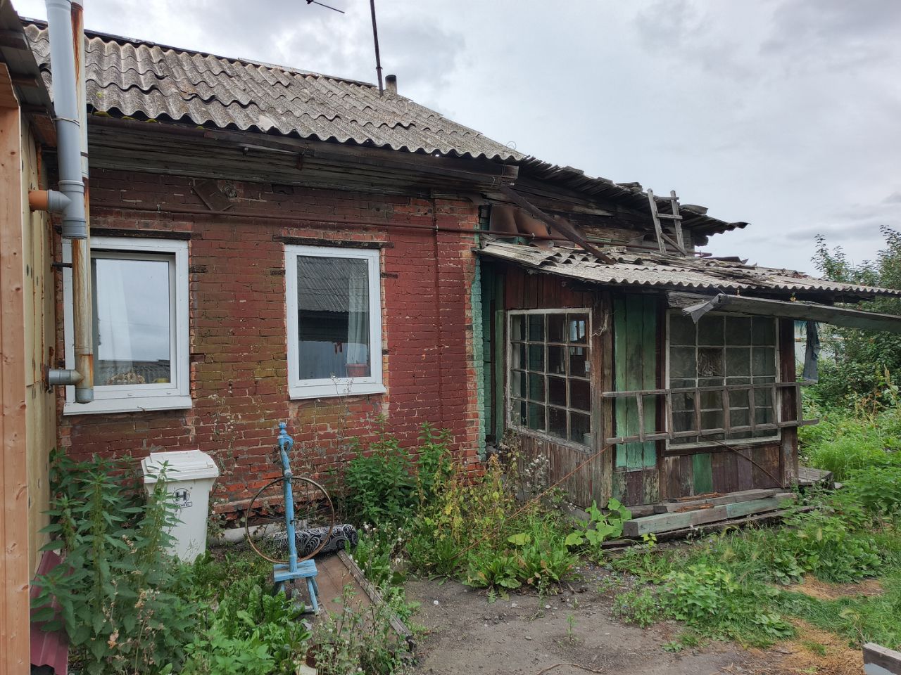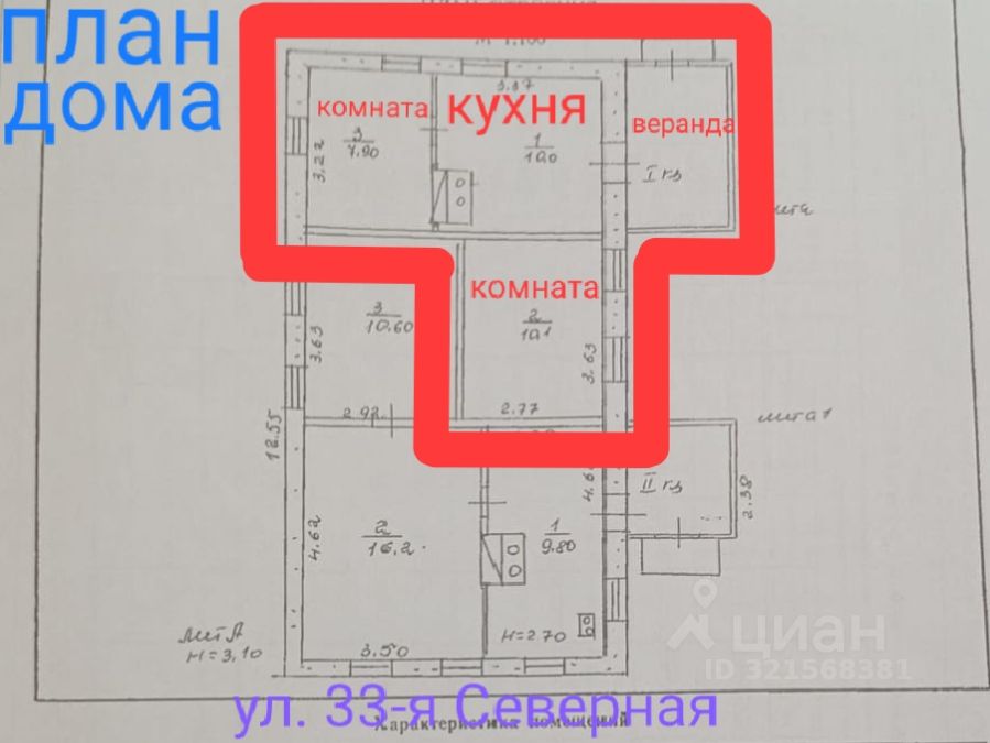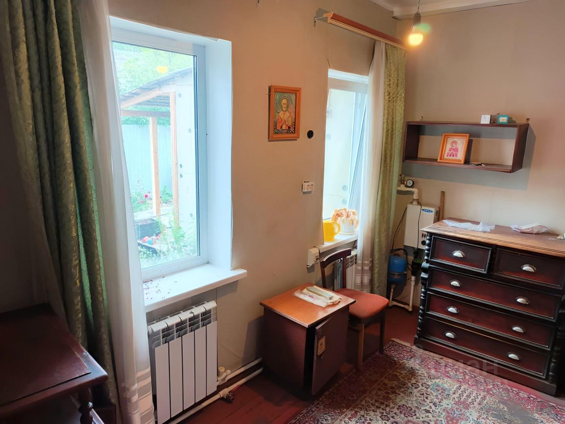 Площадь моей 1/2 доли дома составляет 32,5/18/10 м², две изолированные комнаты, кухня, веранда. В доме есть газ, но котёл не установлен, на данный момент два вида отопления: печное и электро-водяное (антифриз). Высота потолков 2,7 м., вода с колонки, при желании, можно подключить центральный водопровод (у соседей во второй половине дома есть туалет и душевая кабина). Земельный участок в собственности, площадь моей 1/2 доли участка составляет 2 сотки, есть хозпостройки и посадки. Двор общий.