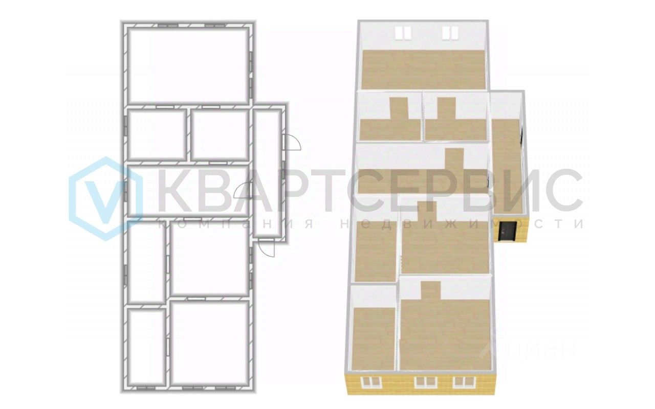 Планировка дома включает в себя: 6 комнат, кухню и просторную прихожую, что идеально подойдёт для большой семьи или тех, кто мечтает о просторном доме.