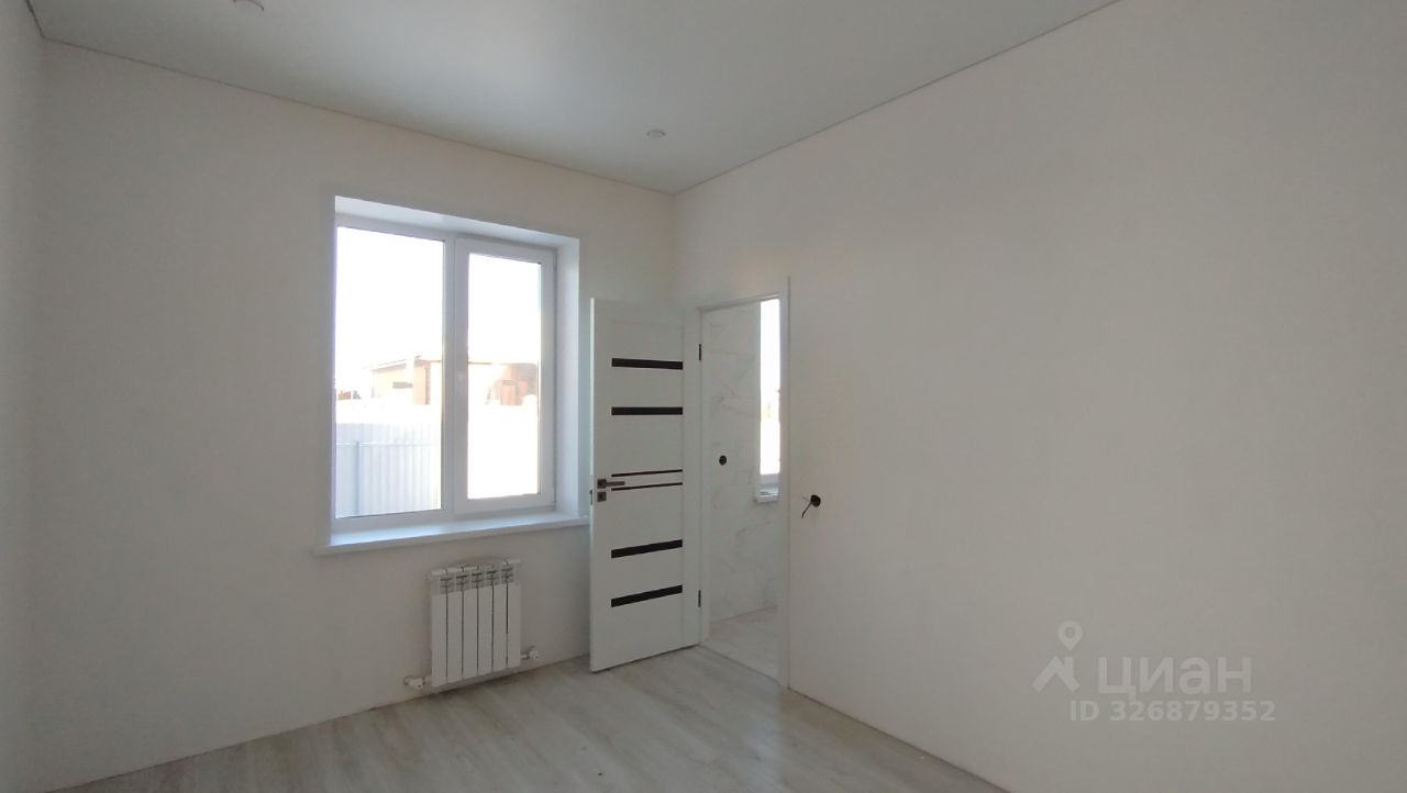 Одноэтажный дом из газоблоков, срок сдачи март 2026 года. Общая площадь составляет 105 м², кухня-гостинная+3 комнаты, 2 сан/узла.