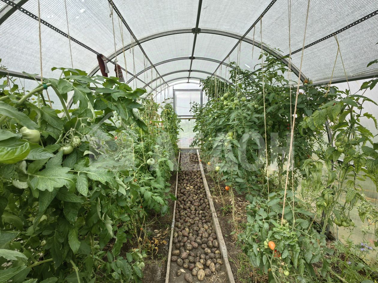 На участке имеются хоз. постройки, баня, гараж, для любителей огорода имеется большая теплица. Очень плодородная земля, участок ухоженный!