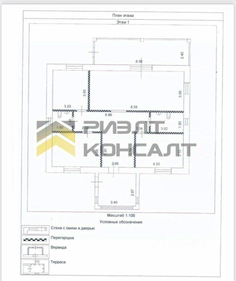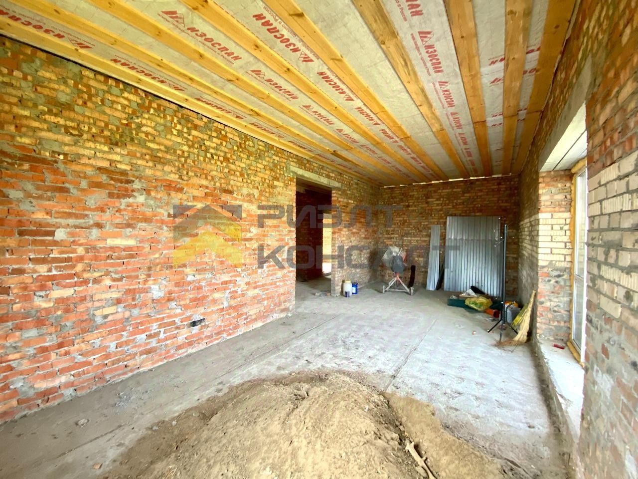 Планировка дома продумана для удобства: две просторные прихожие с панорамными окнами, три изолированные комнаты, гардероб, тепловой узел, который можно использовать как кладовую, большой санузел и просторная кухня-гостиная с выходом на террасу через витражное окно.