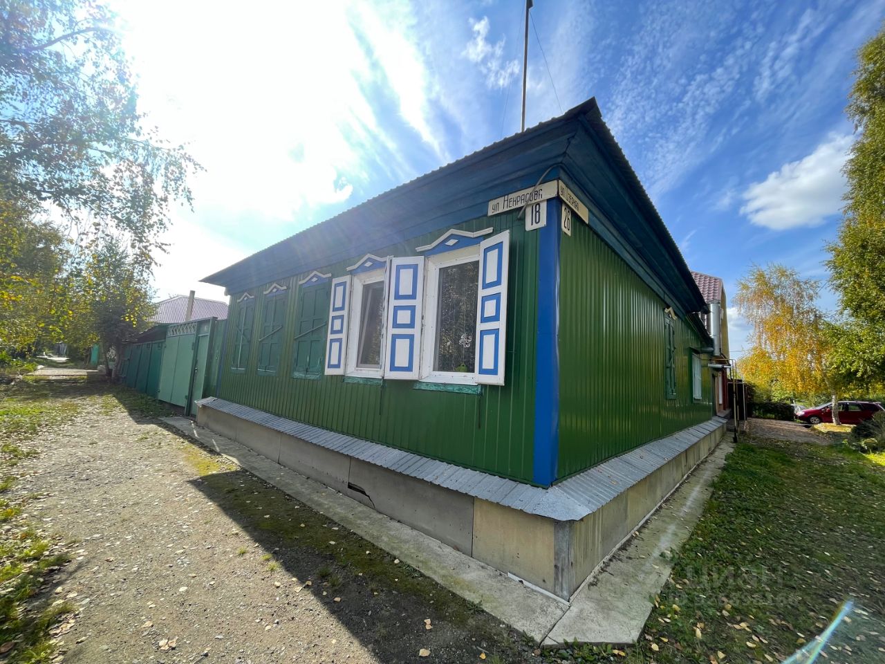 Ухоженный бревенчатый дом в тихом районе.
