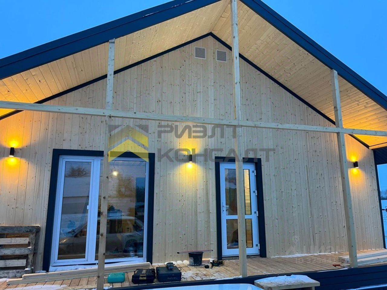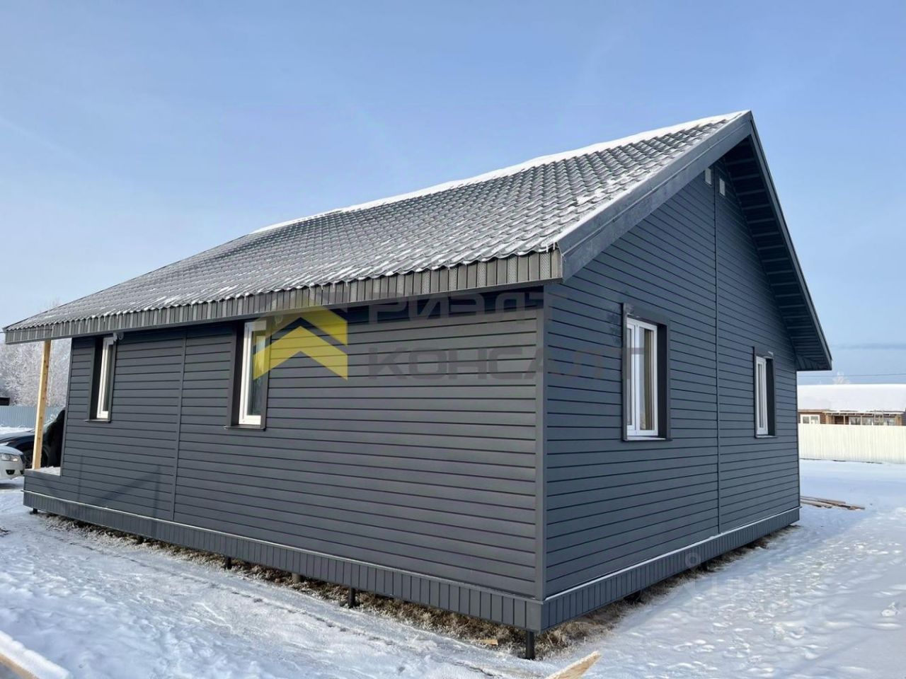 Отделка под ключ: во всех помещениях разводка электричества и отопления (электрокотёл), стены выровнены, обои, линолеум. Установлены откосы и подоконники. Смонтированы точечные светильники, натяжные потолки во всех помещениях. Оборудован санузел, стены выложены современной кафельной плиткой. Установлены межкомнатные двери. Дом на свайном фундаменте, построен по проекту, с соблюдением ГОСТов и СНИПов. Коробка 9*10,5. Утеплитель мин.вата по всему периметру дома. Перекрытия из бруса. Террасная доска - сосна. Заведены все необходимые коммуникации: водопровод, септик, электричество.
