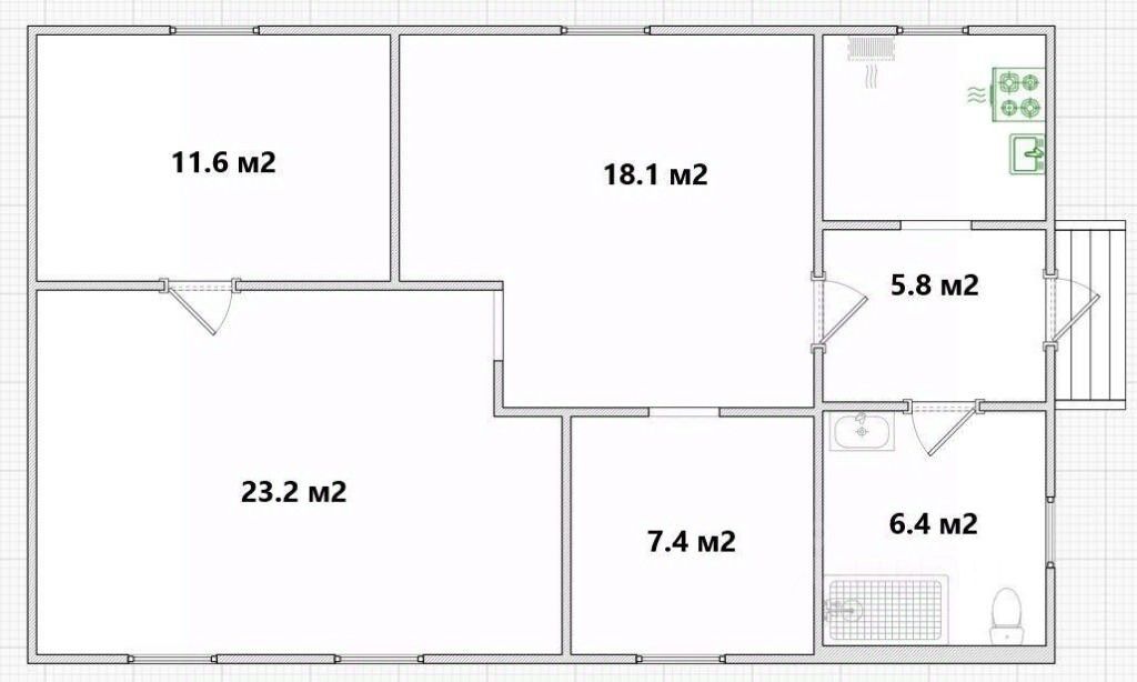 Все комнаты просторные, правильной формы: спальня, детская, зал, гостиная, прихожая (есть погреб), санузел, кухня.