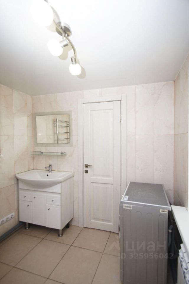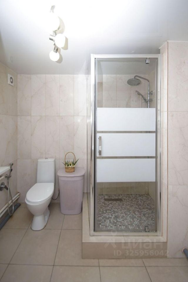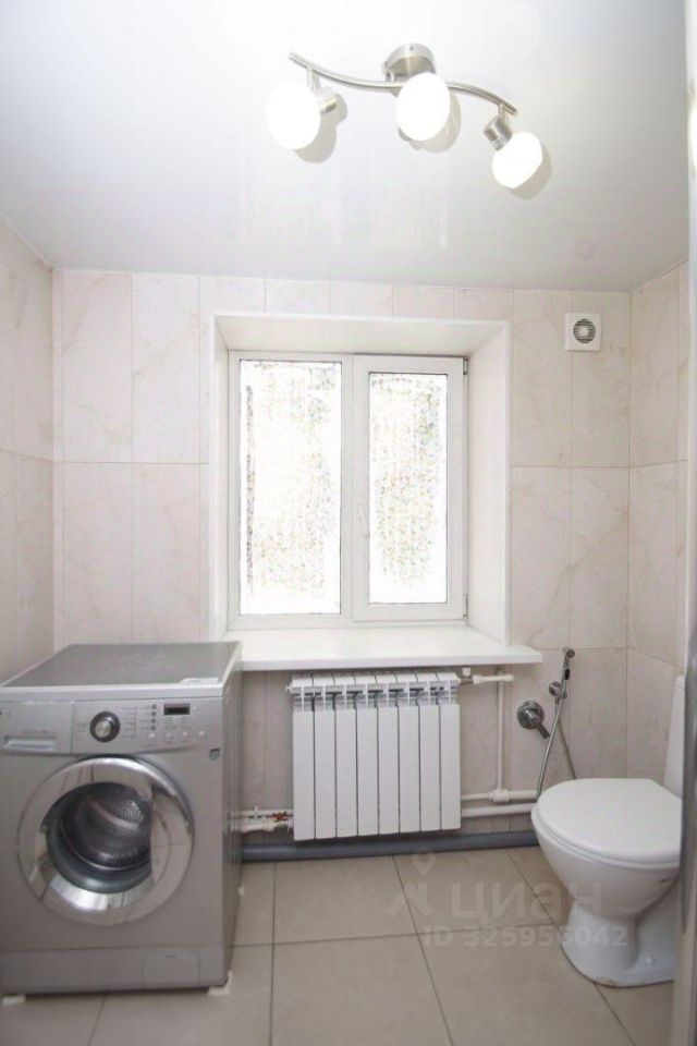 Санузел совмещенный: унитаз, раковина, душ, установлена стиральная машина-автомат.