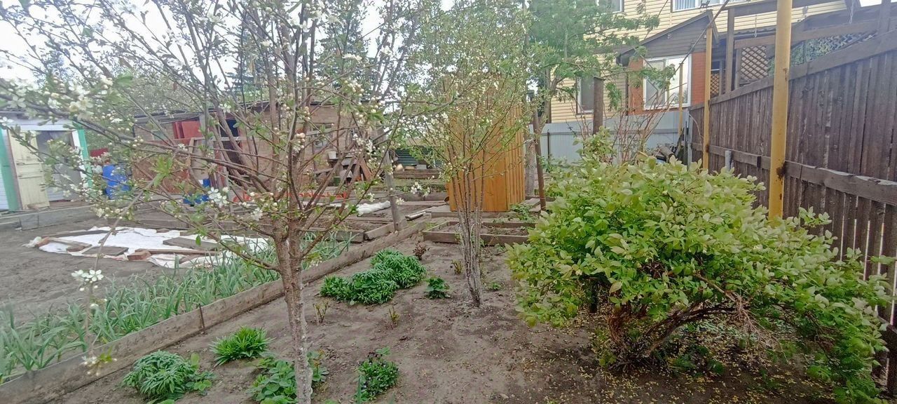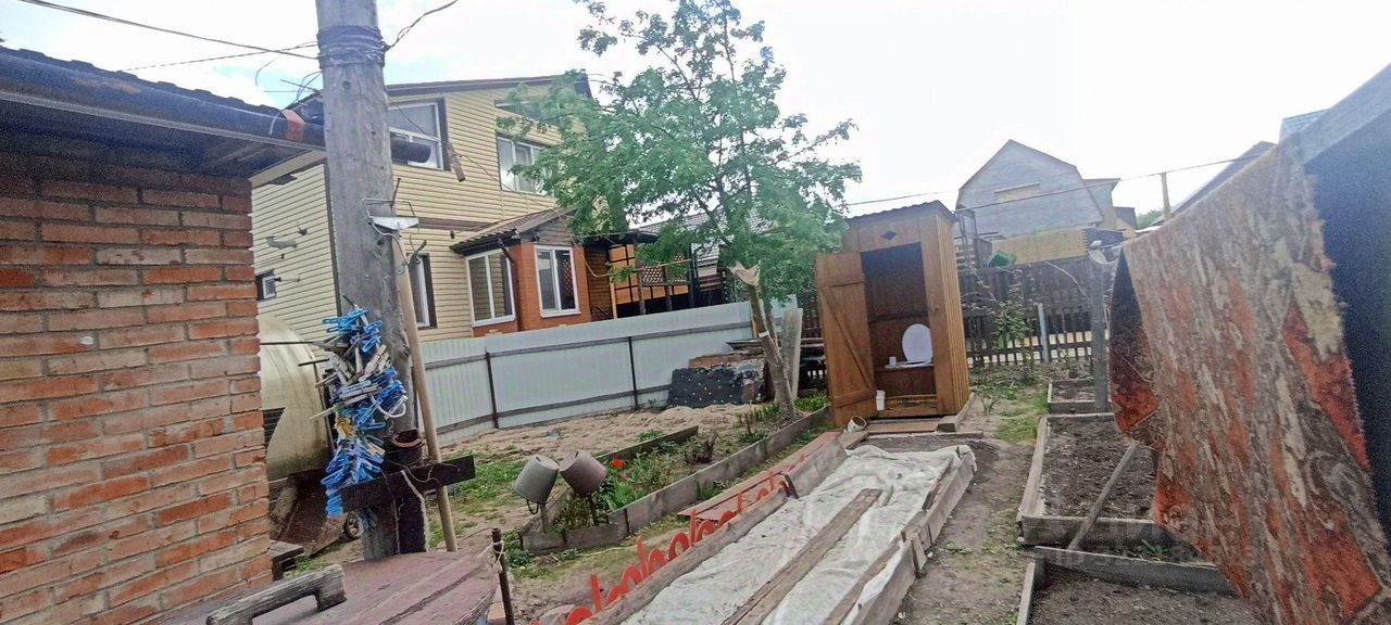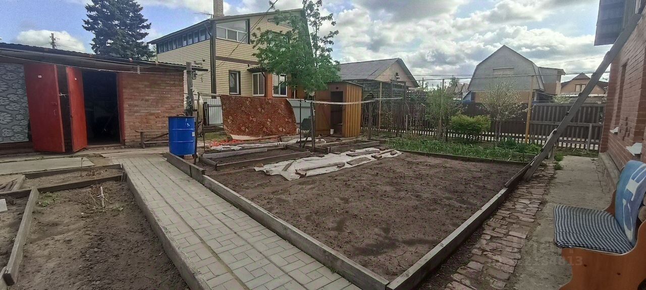 Территория земельного участка распланирована таким образом, что на ней расположились и постройки (два сарая, гараж, уличный туалет), и посадки (малина, смородина, вишня, грядки для зелени, цветы). Садовые дорожки и вокруг дома выложены плиткой.