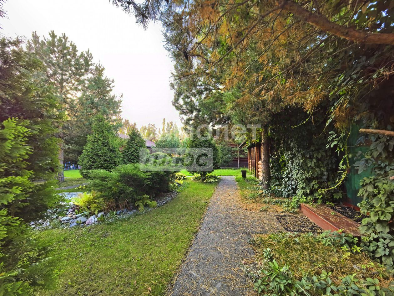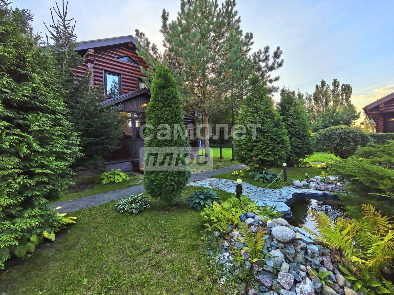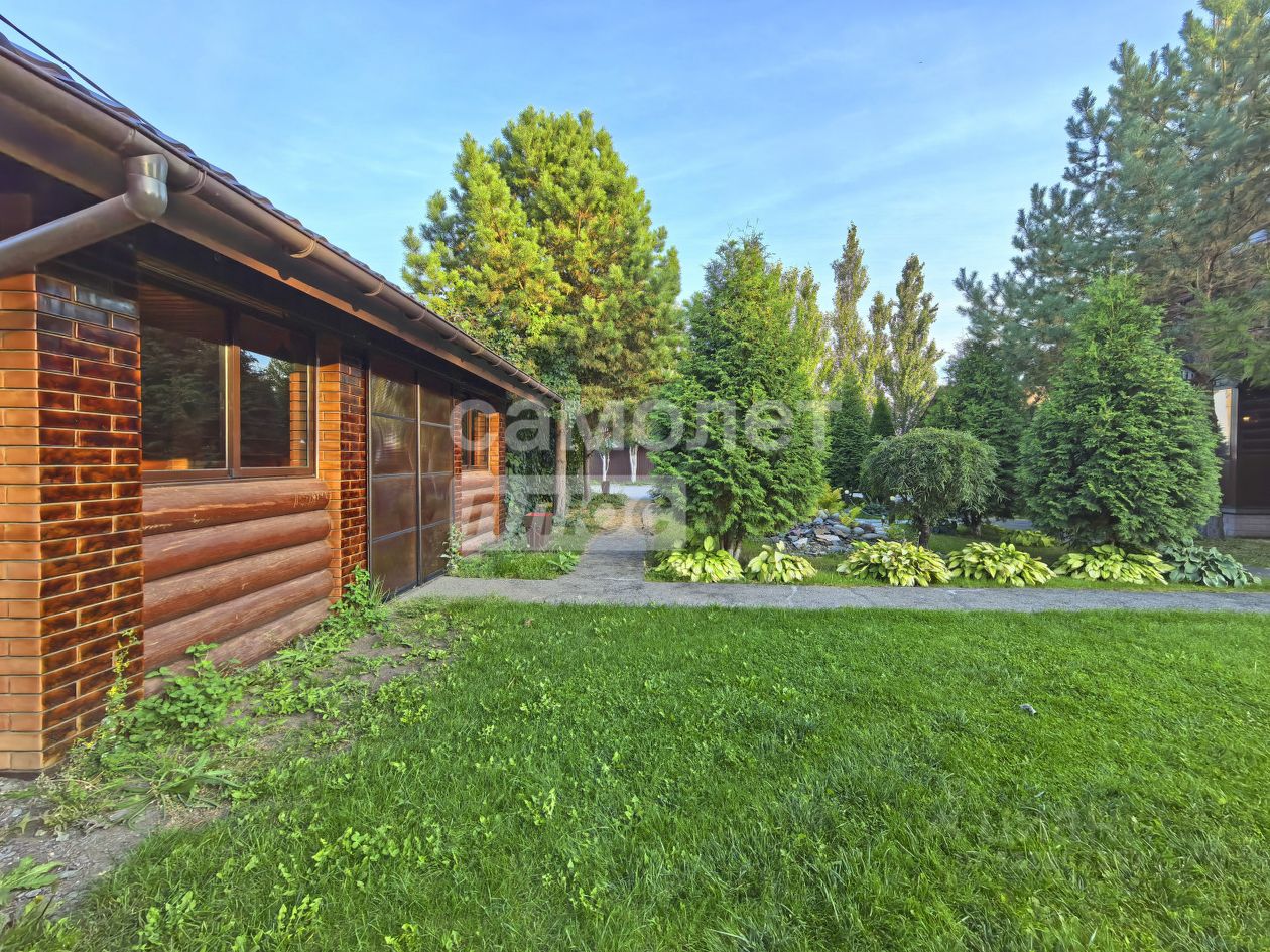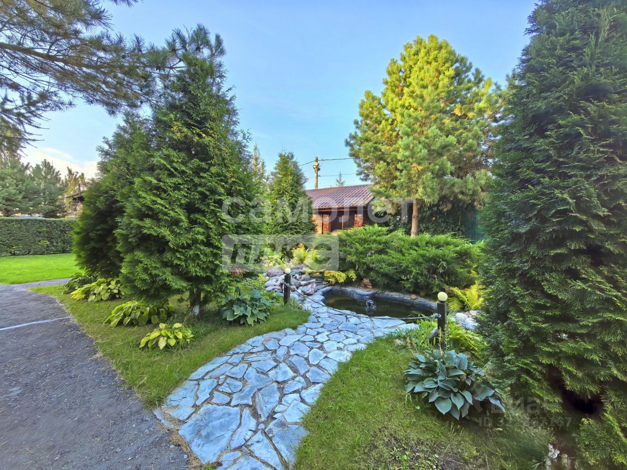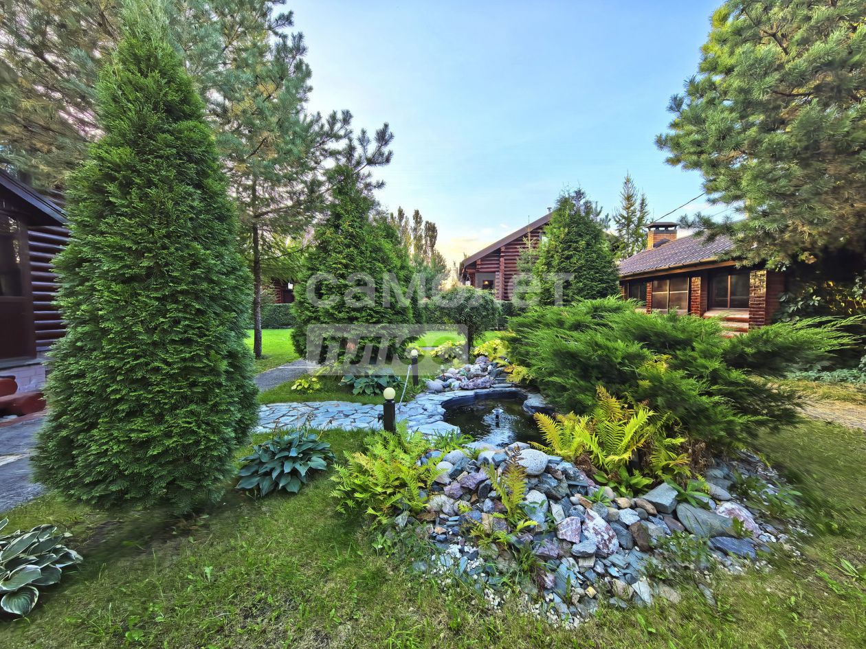 на участке выполнен ландшафтный дизайн, растут взрослые сосны, лиственницы, туи, ива, ели, хоста, папоротники, живая изгородь - за всем на постоянной основе ухаживает садовник.