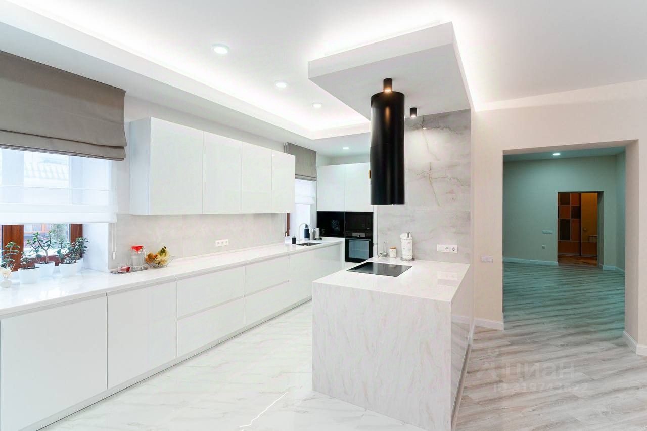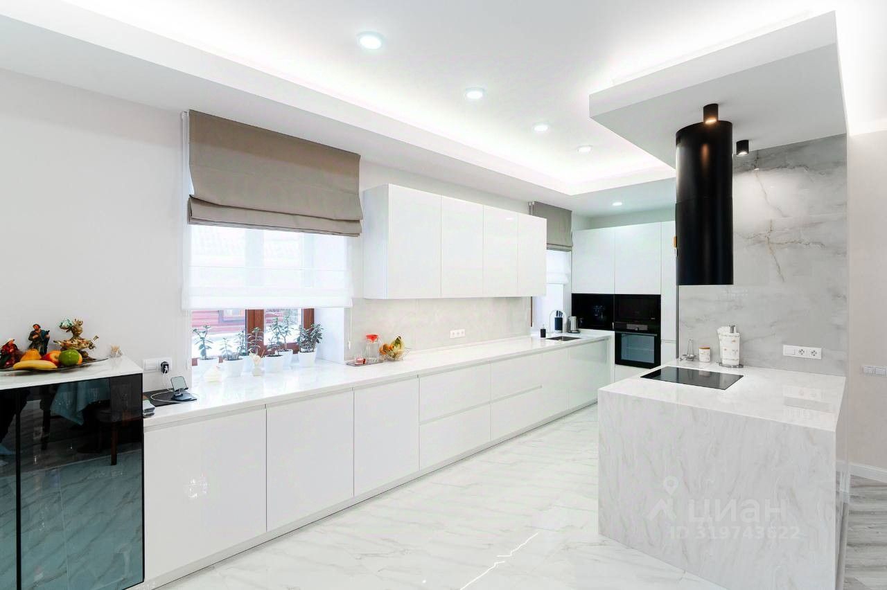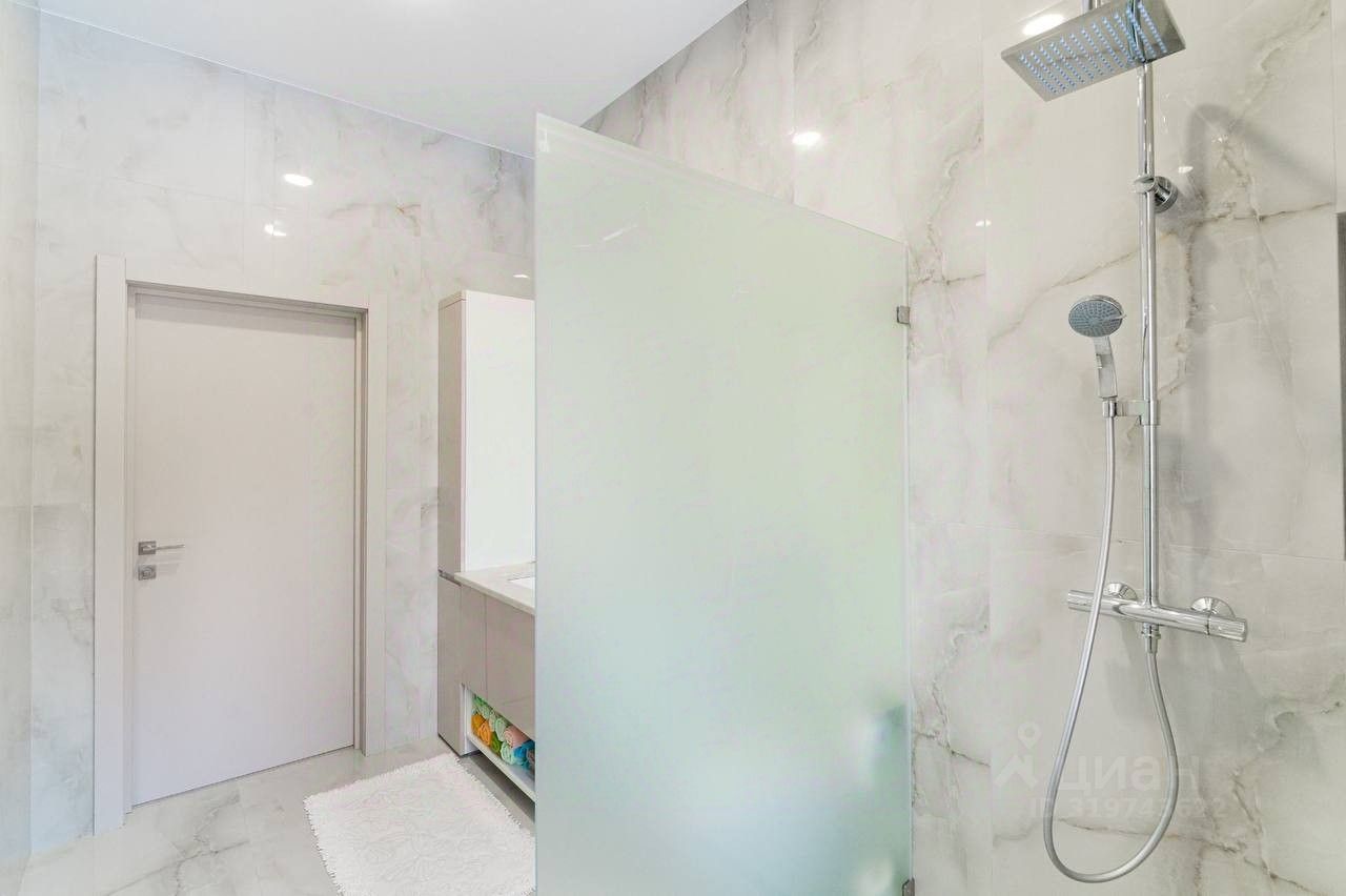 В доме 4 спальни, просторная кухонный гарнитур (Италия), большая гостинная, 2 санузла, установлена сантехника (Германия), гардеробные, панорамное остекление.