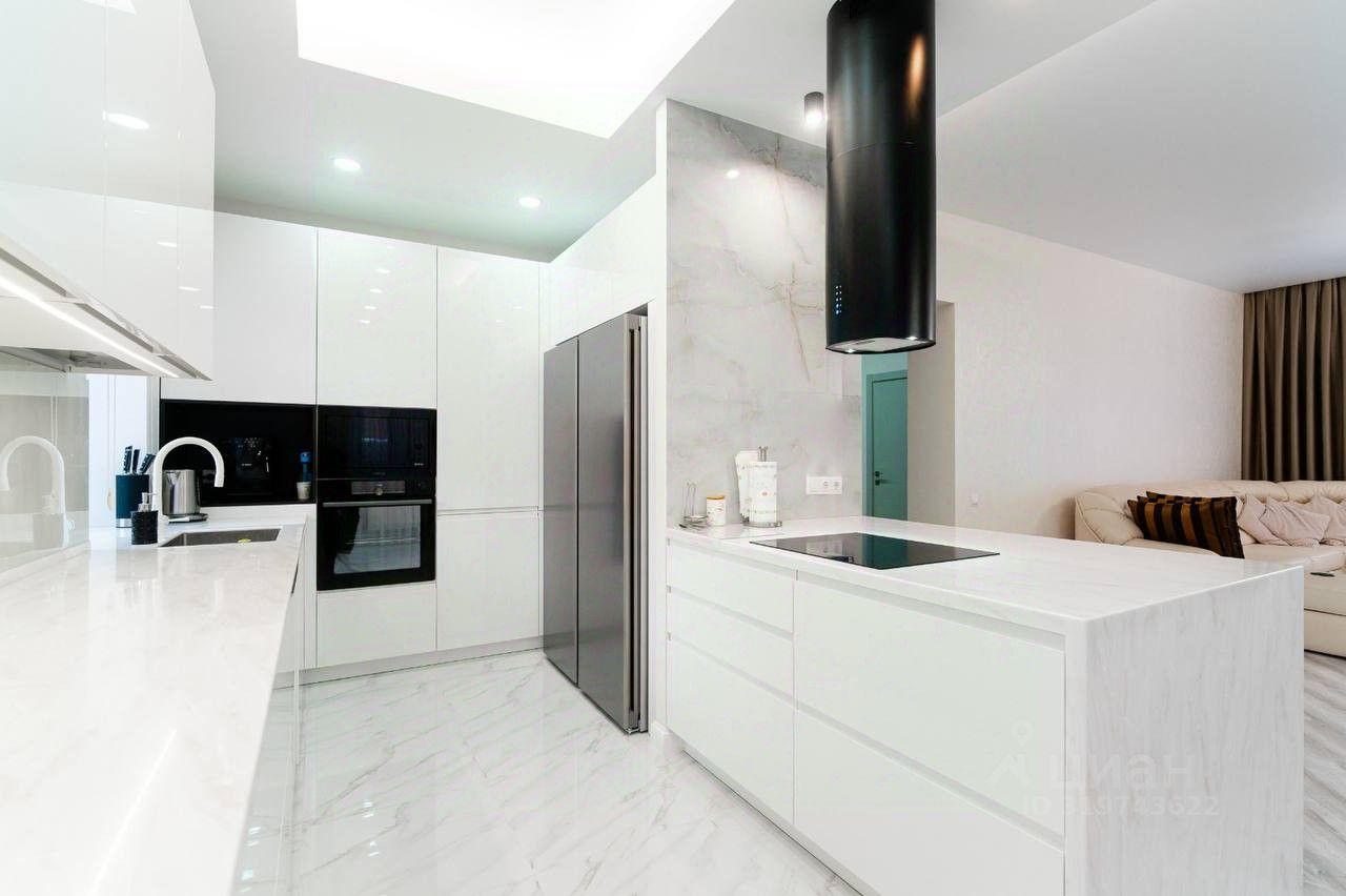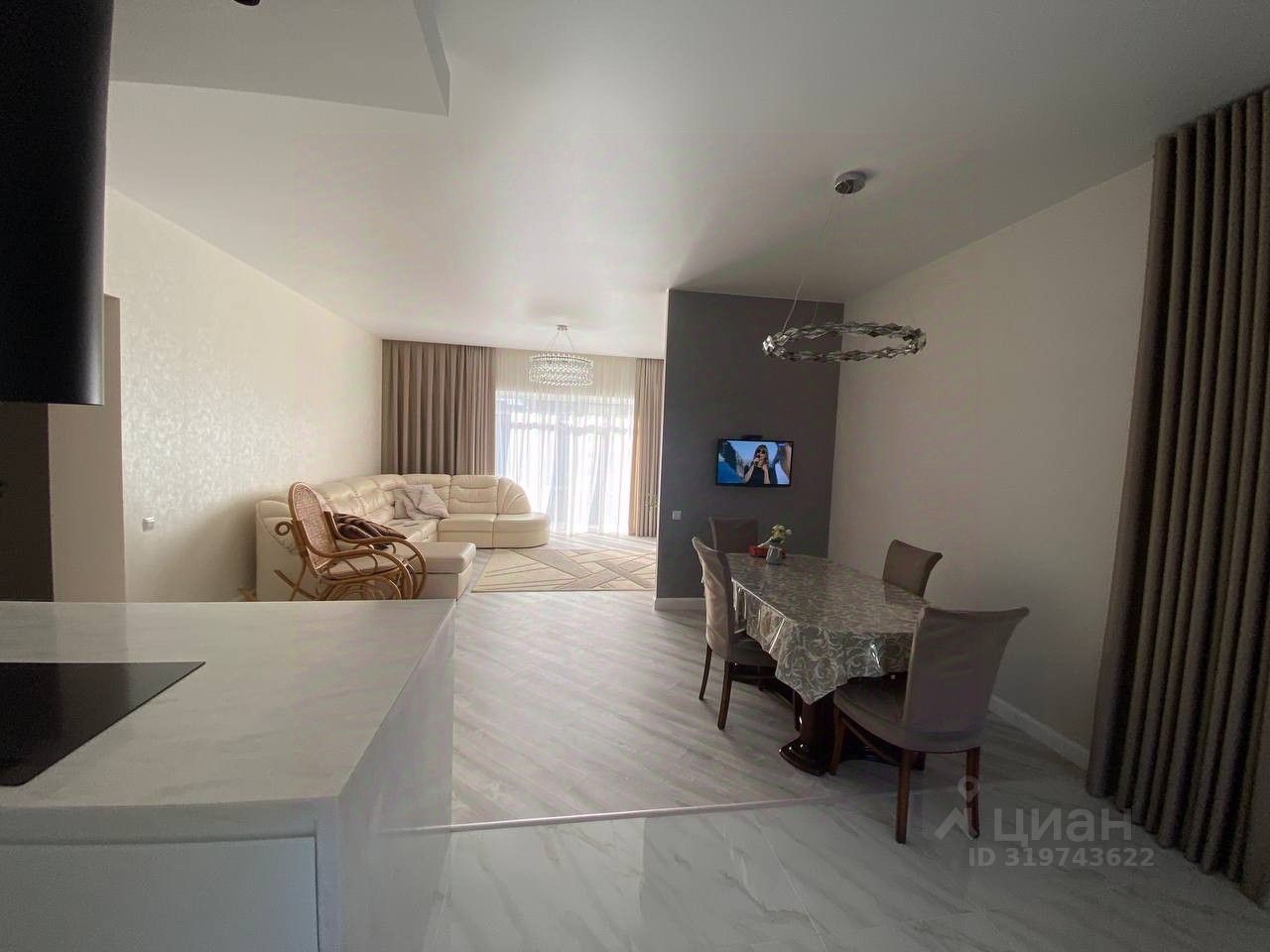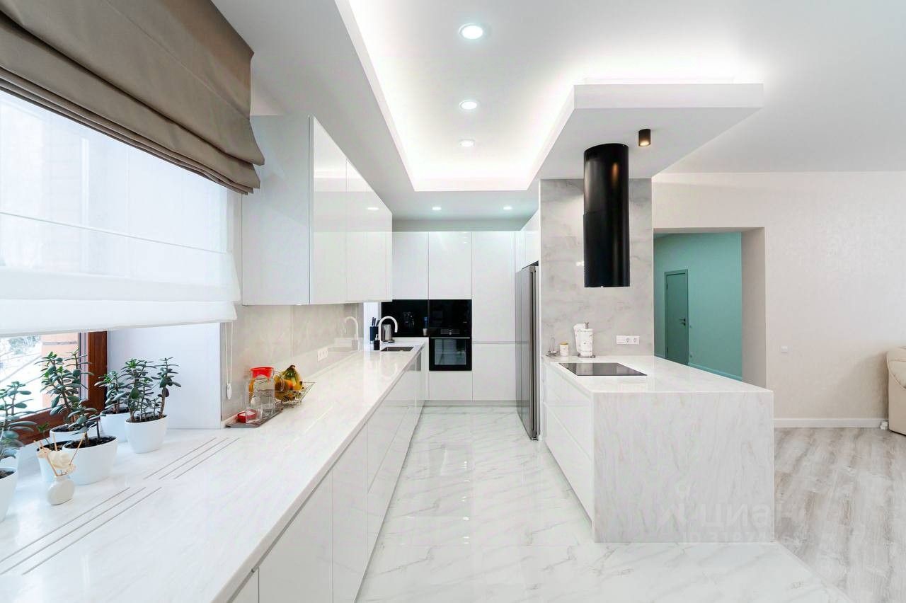 В доме 4 спальни, просторная кухонный гарнитур (Италия), большая гостинная, 2 санузла, установлена сантехника (Германия), гардеробные, панорамное остекление.