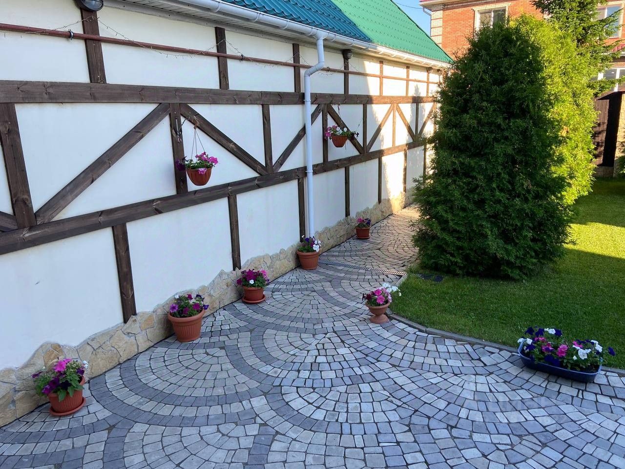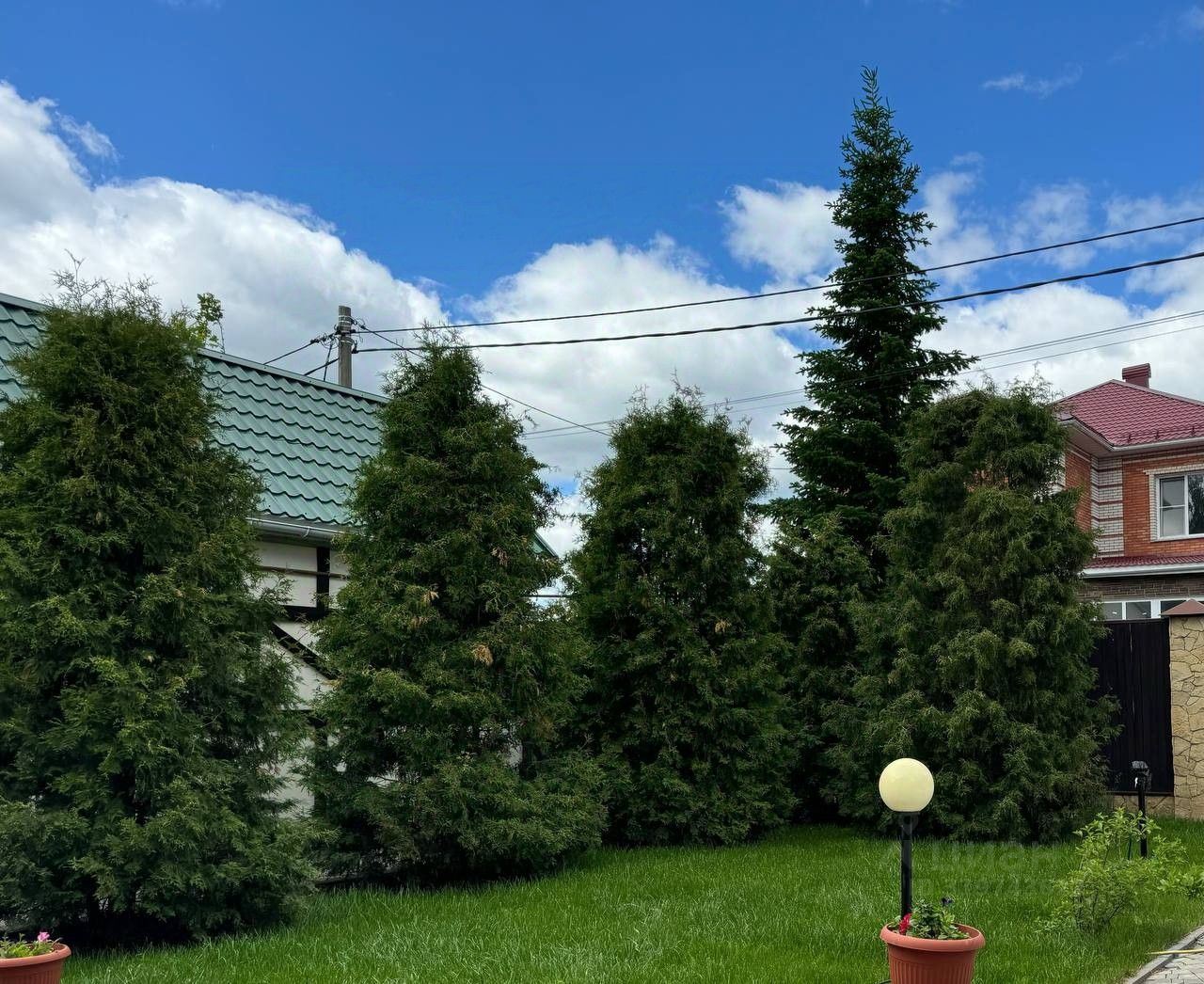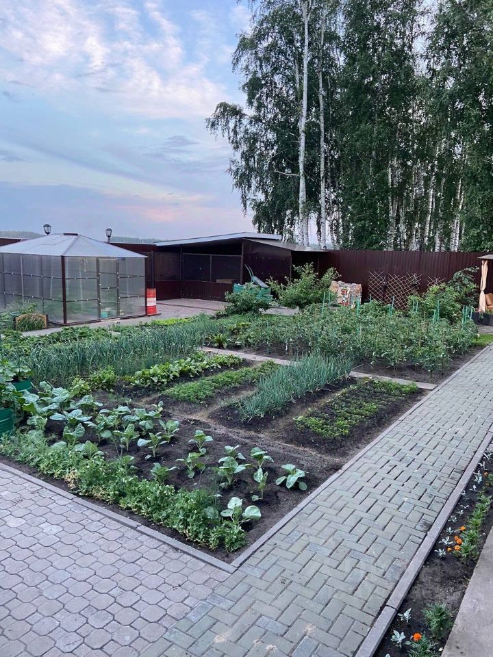 Большой земельный участок, площадью более 20 соток, двор выложен плиткой, множество хвойных деревьев, ландшафтный дизайн. Посадки: малина, клубника, смородина, слива, вишня, груша, яблоня, жимолость. Сад из плодовых деревьев. Большая теплица.