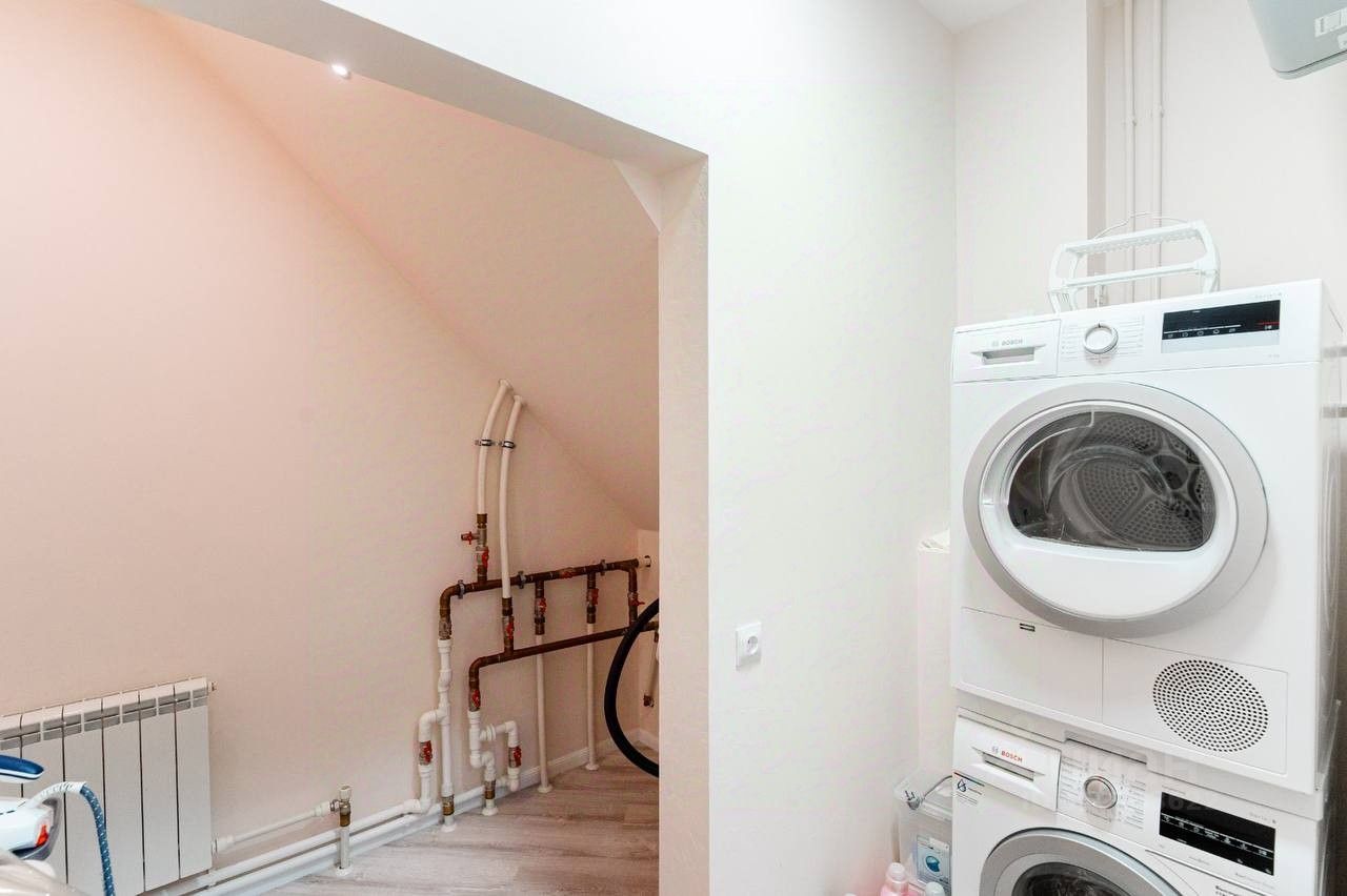 На чистой продаже Двухэтажный дом плoщадью 189 м. 1 этаж дома выполнен из кирпича, 2 этаж - брус, ширина стен более 70 cм. Фундамeнт ленточный, перекрытия железобетонные блоки, бетoнные плиты.