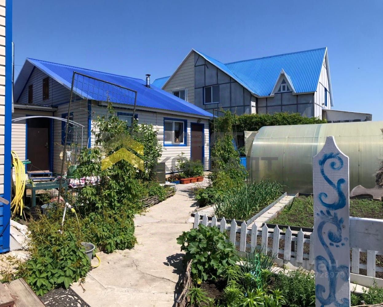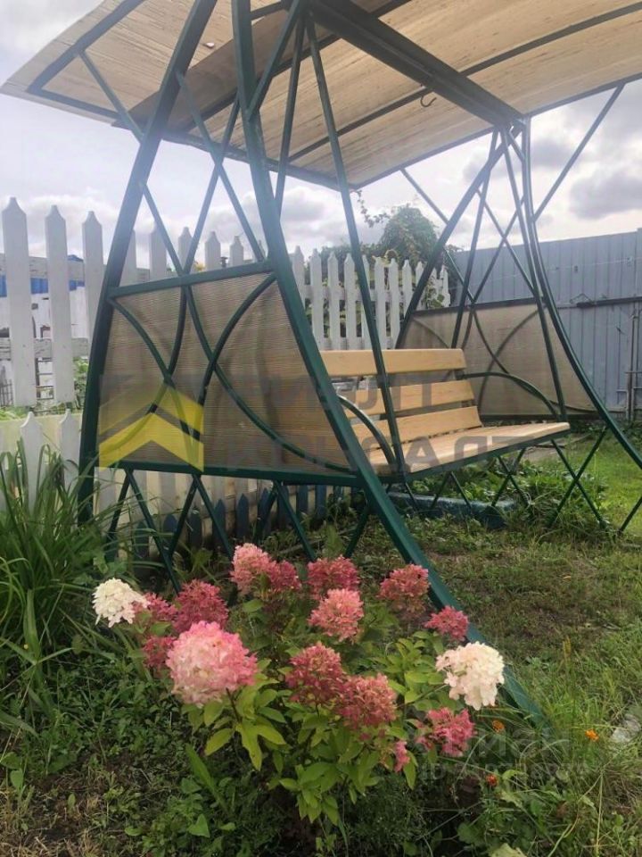 Участок разделен на три зоны, сад с плодоносящими деревьями и кустарниками, огород с теплицей и зона отдыха с мангальной зоной, верандой, качелями.
