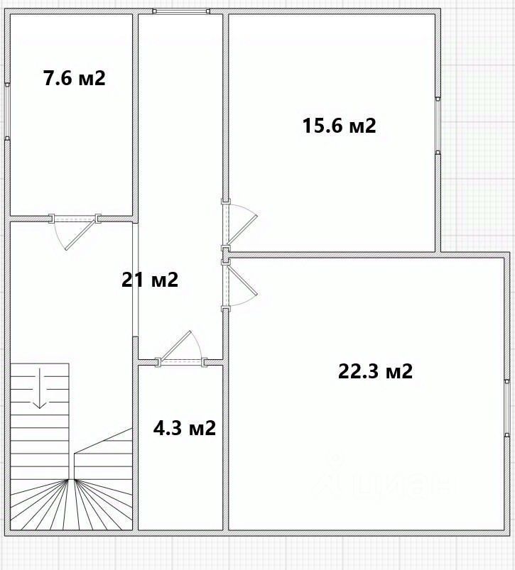 Второй этаж дома площадью 71,9 кв.м состоит из 3-х изолированных комнат 23,3 кв.м, 15,6 кв.м и 7,6 кв.м, прихожей 21 кв.м, гардеробной комнаты.