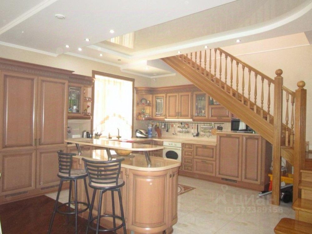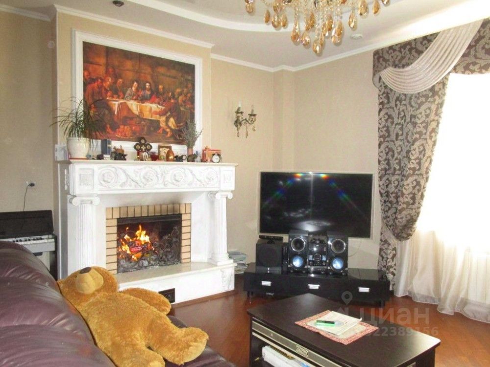 На первом этаже расположена гостинная с действующим камином, кухня,большой холл при входе.