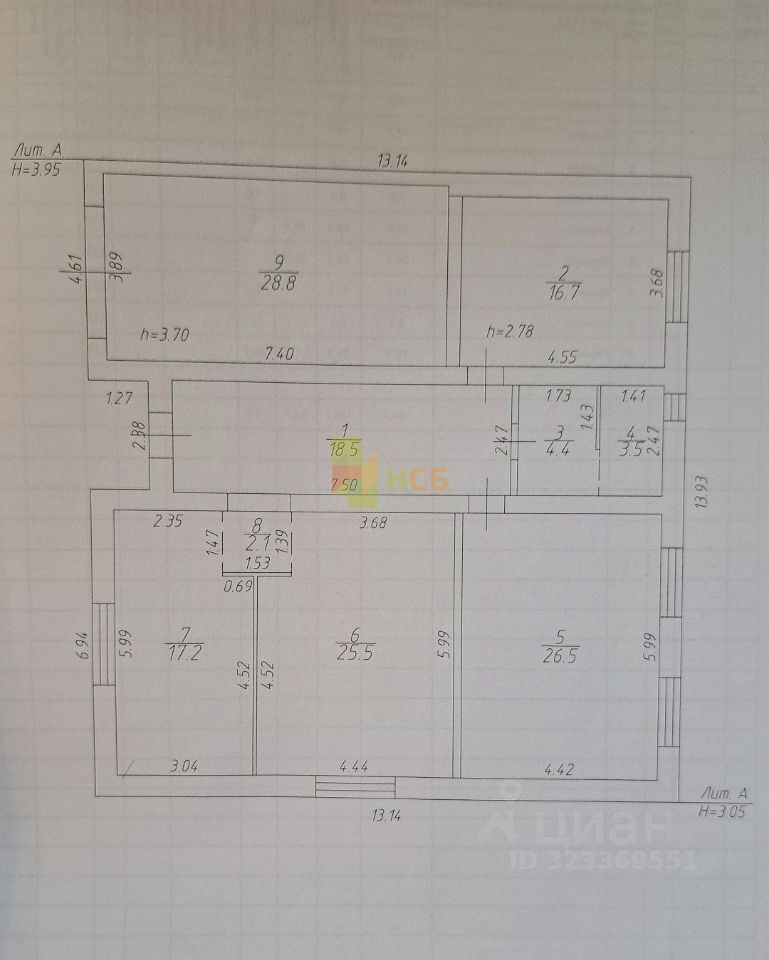 Перекрытия железобетонные (размер 14*13м, высота от карниза до нижнего облицовочного кирпича 3,8), гарантирующие прочность и надежность конструкций.