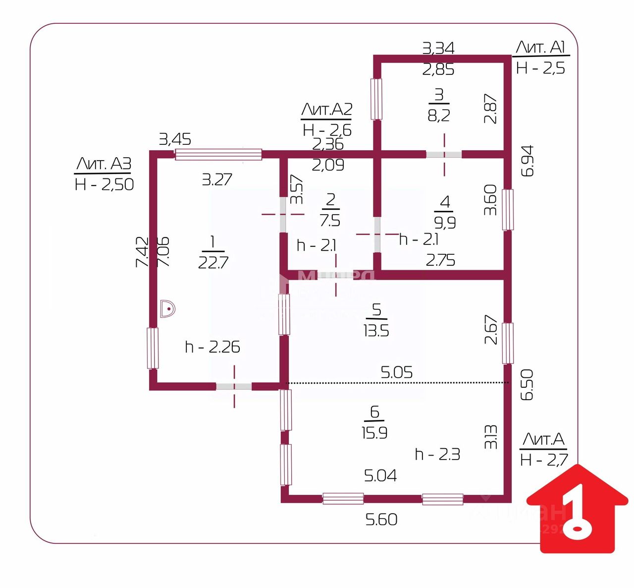 Дом насыпной, состоит из 3-х жилых комнат, вместительной кухни (22,7 м2) и санузла с ванной.
