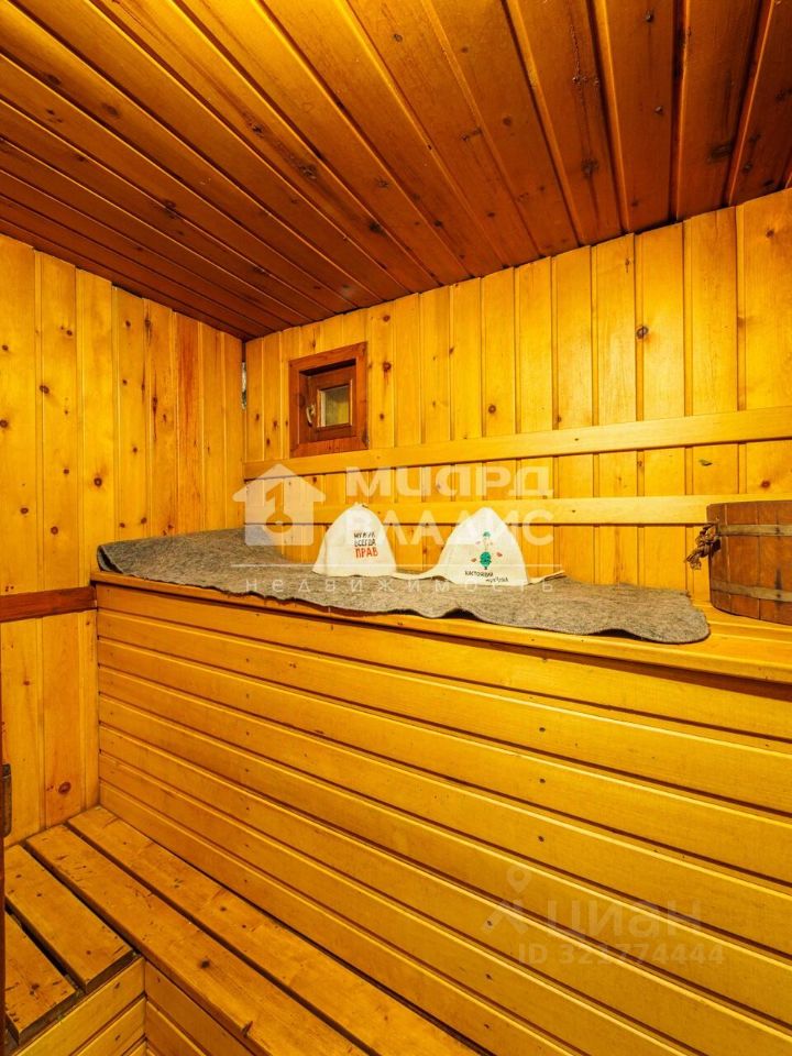 Есть баня из бруса (15 м2) с современной отделкой, парилкой, моечной и комнатой для отдыха. В нее также заведены центральный водопровод, отопление, канализация.