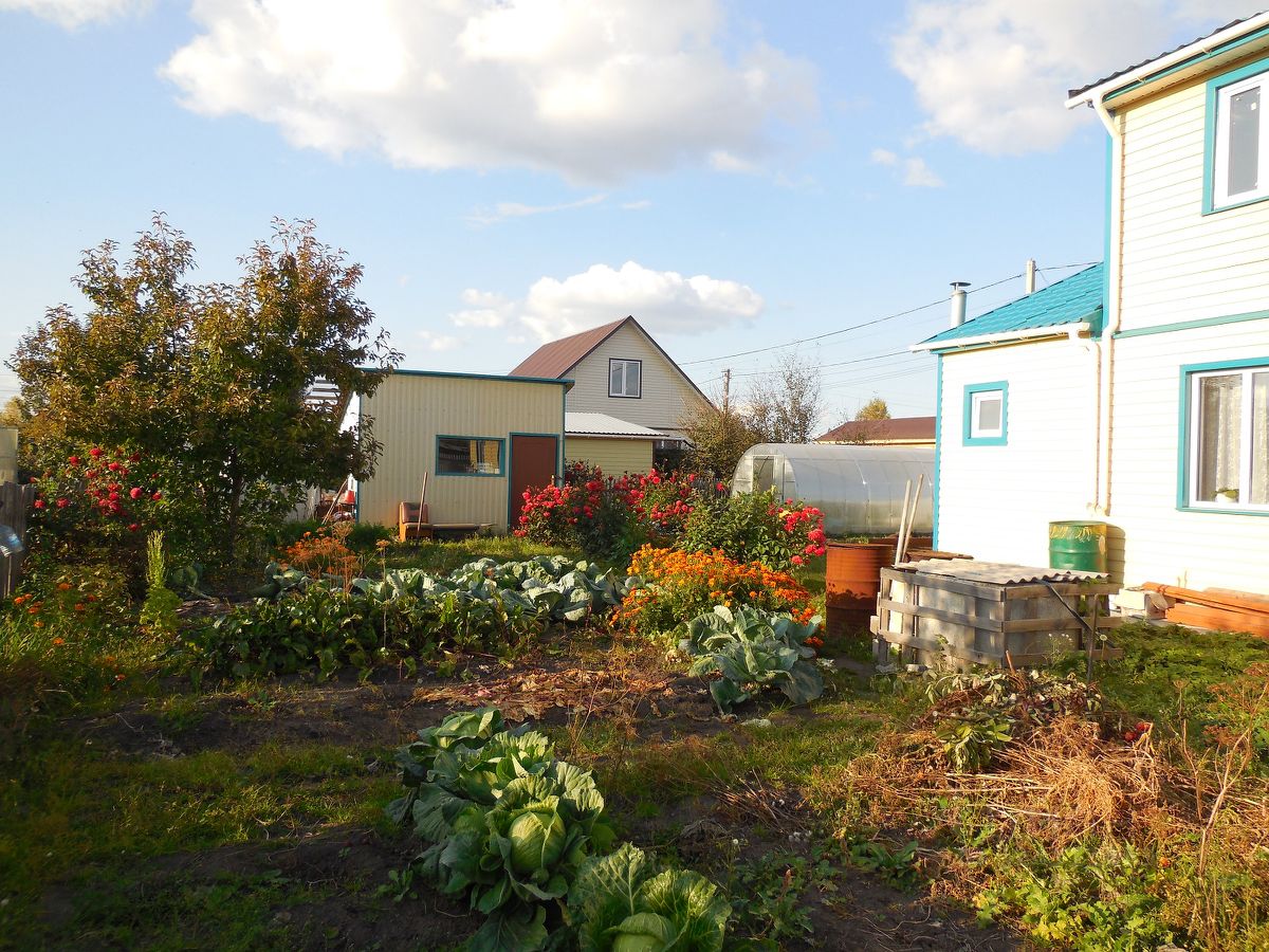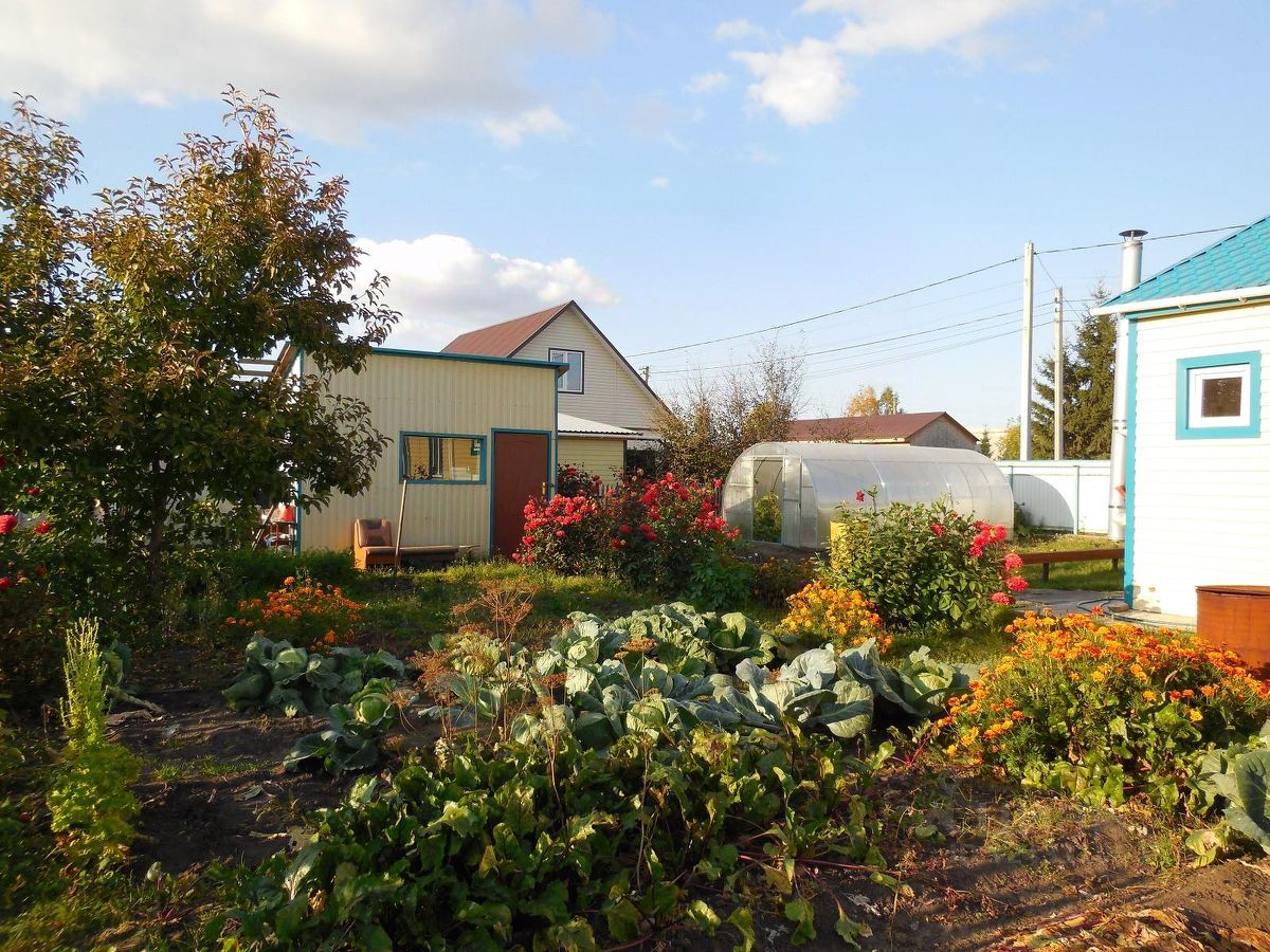 На участке: скважина, летняя кухня, сарай, залиты сваи для террасы, теплица, посадки.