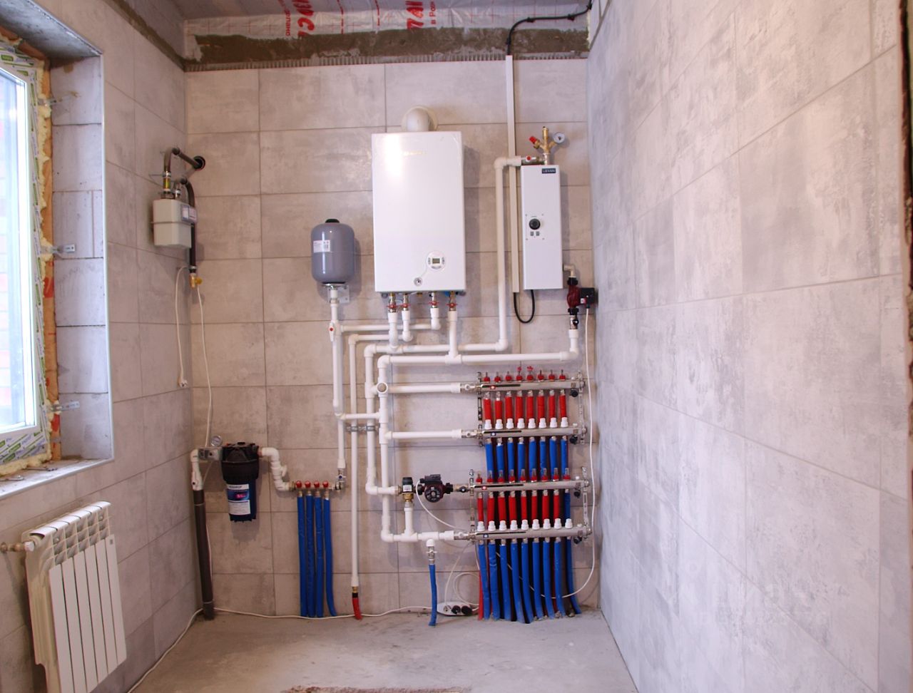 На стенах выполнена штукатурка, идеальная стяжка пола . В дом заведены все коммуникации: вода холодная и горячая, газ, электричество, канализация. Коллекторная система отопления и теплые полы по всему дому. Обвязка котельного узла, электрический и газовый котел установлены. Разводка воды и канализации сделана по всему дому до всех водоразборных точек. Продуманная система вентиляции в кирпичных вентканалах. Радиаторы отопления под каждое окно. Все работы выполнялись профессиональными рабочими, имеющими многолетний опыт в малоэтажном строительстве.