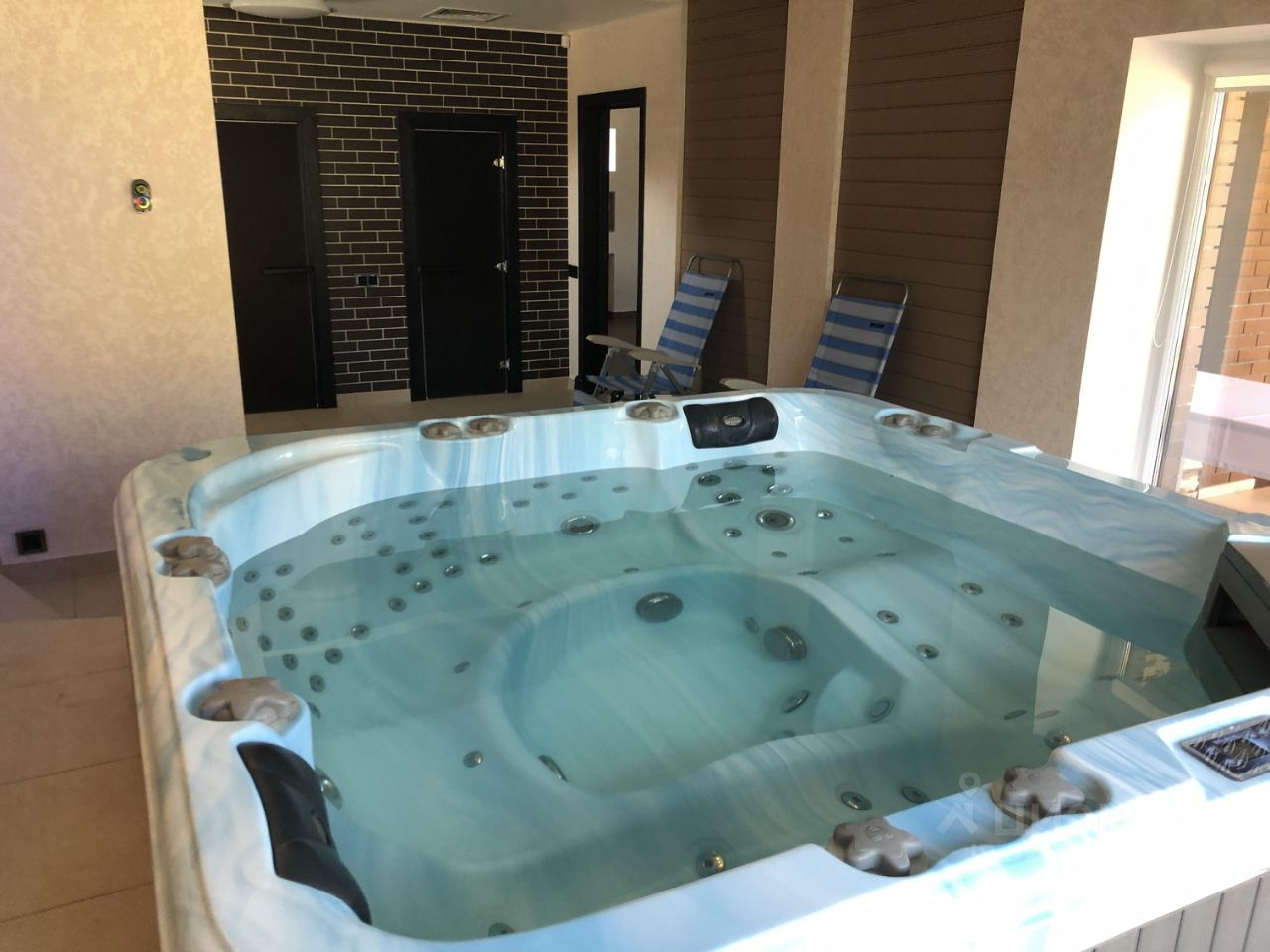 В гостевом доме оборудованы финская сауна и СПА-бассейн Washington (82 форсунки, 2 лежачих и 4 сидячих места).