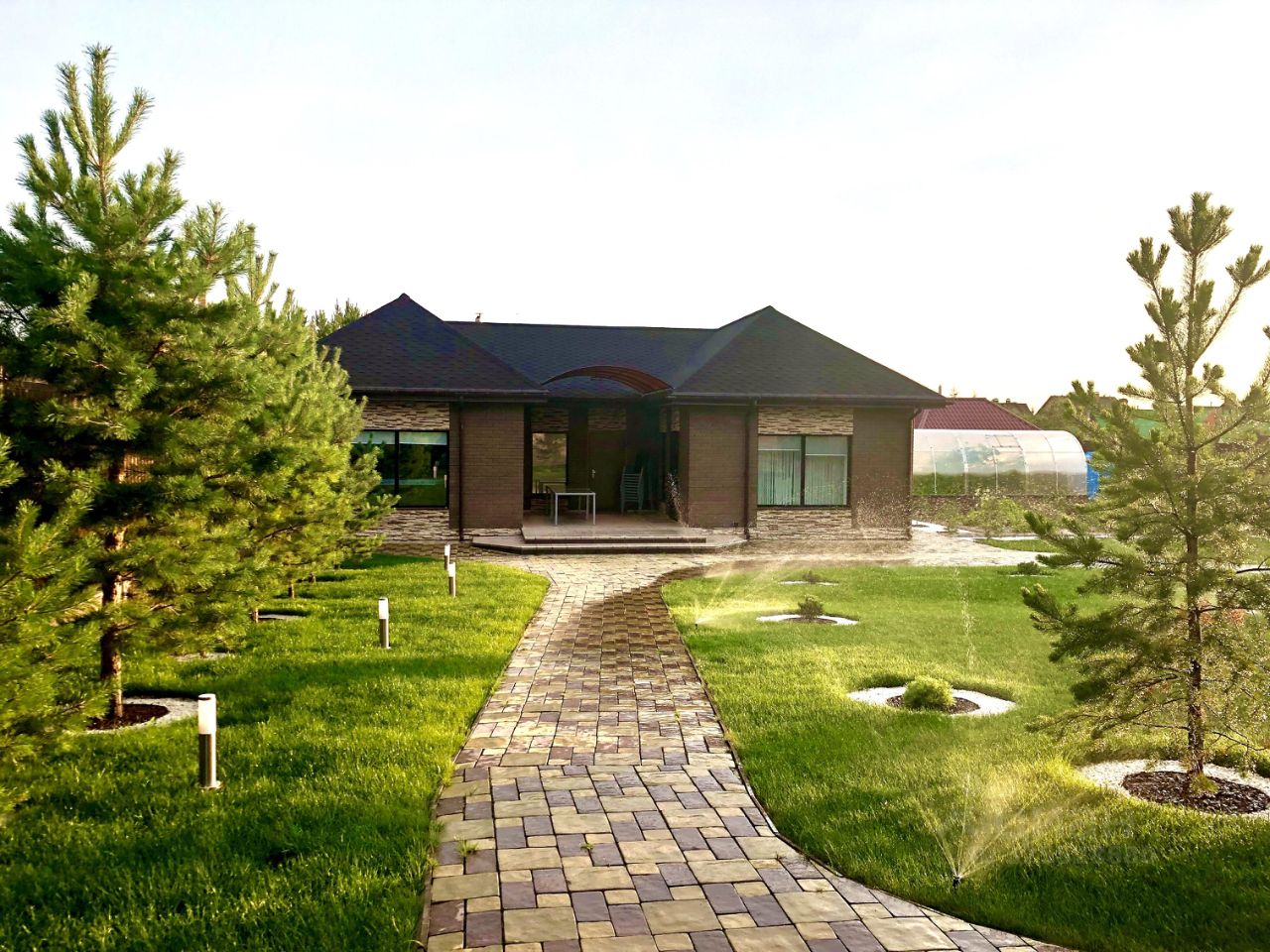 Установлена 8-зонная система автоматического полива газона, огорода и теплицы Hunter (USA). Подведены два водопровода: городской и поливной.