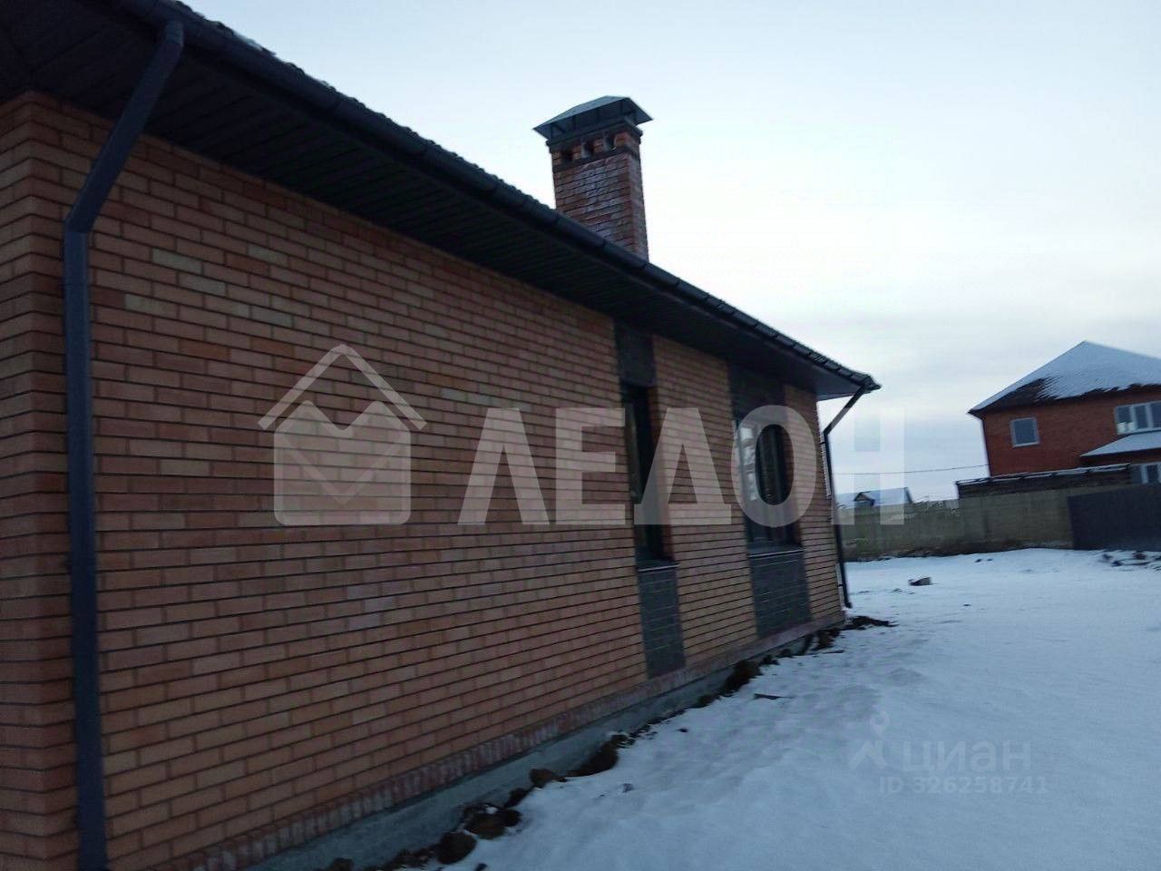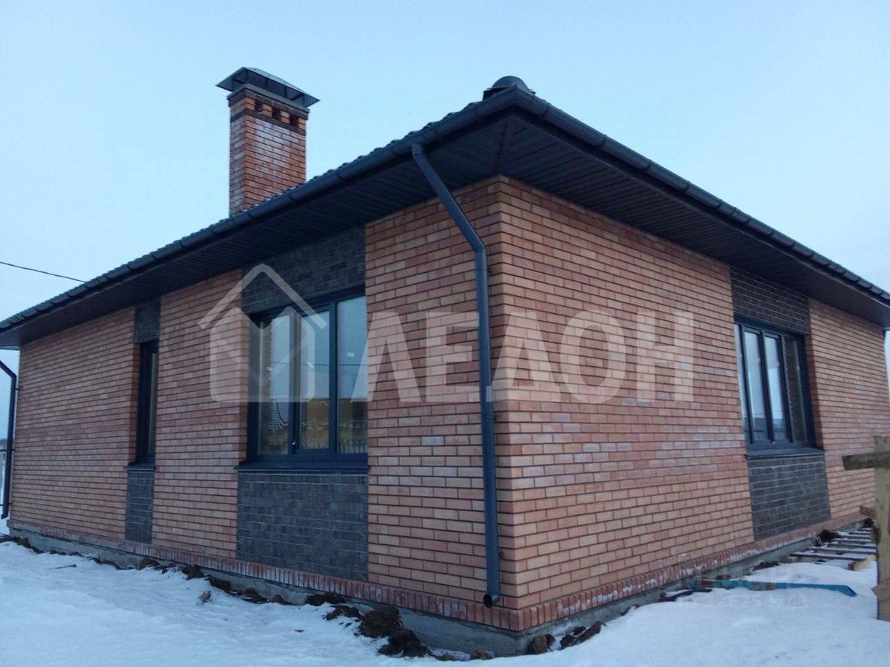 Дом одноэтажный. Материал изготовления - газобетонный блок, фасад облицован декоративным кирпичом, оборудован интерьерной подсветкой. Вальмовая кровля из металлочерепицы.