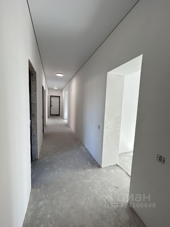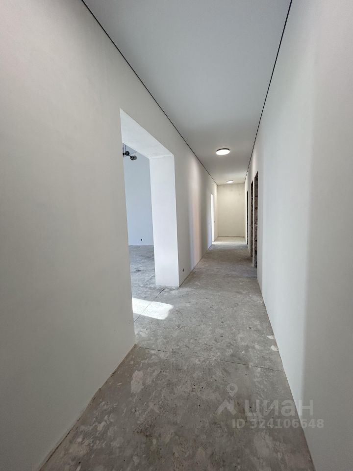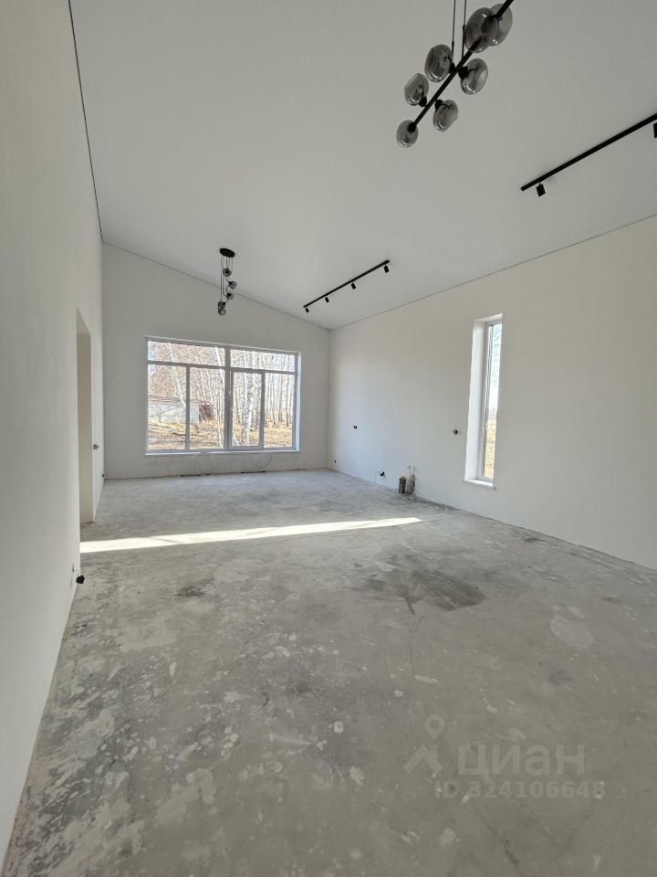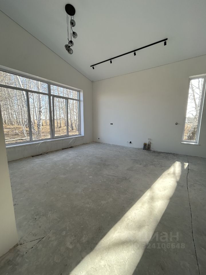 Планировка: гостиная-кухня, 3 спальни, высота потолка в гостиной до 4,8 м, большие окна с видом на березы.