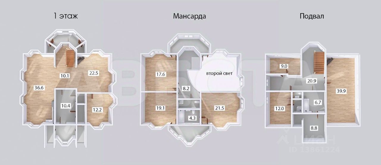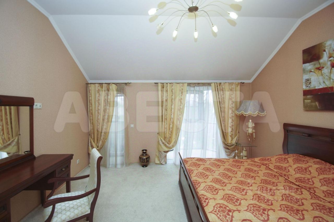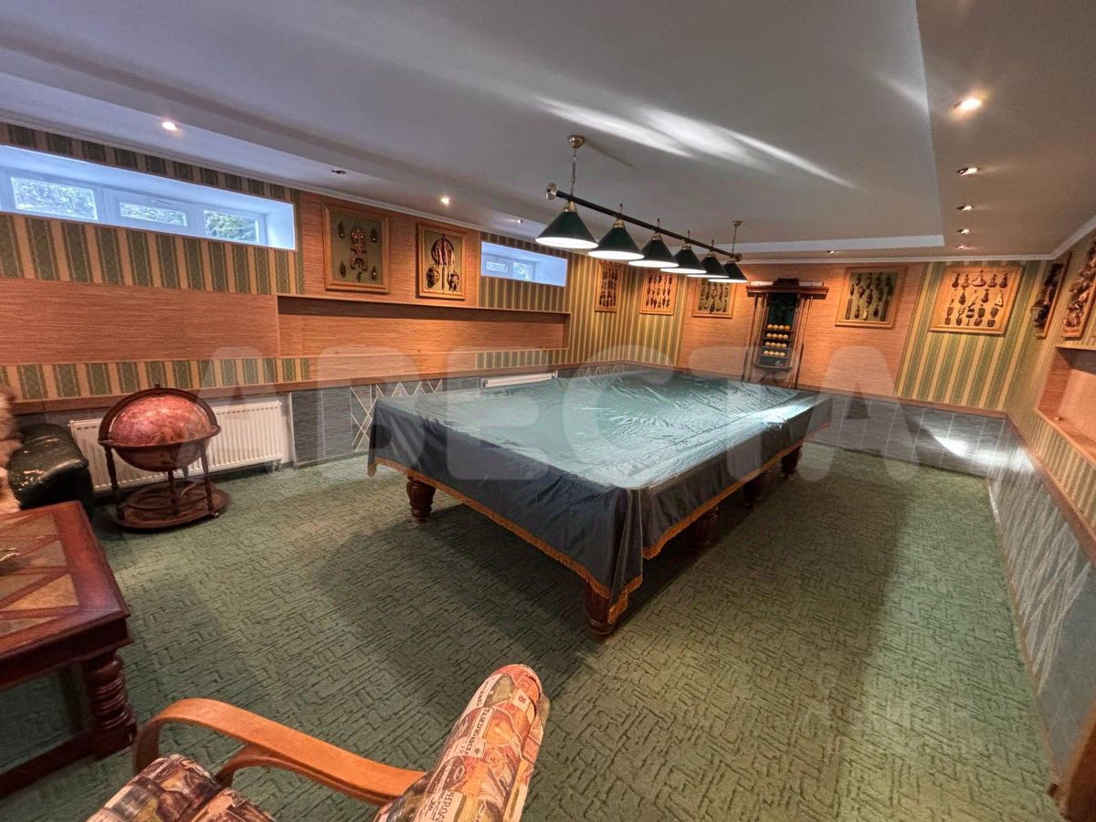 В доме на втором этаже расположены три спальни с выходами на лоджии, общий санузел с душевой, кроме того, в одной из спален оборудован отдельный санузел с ванной. На первом этаже находятся прихожая, вместительный гардероб, санузел, просторная кухня-столовая, гостиная в два света с камином, кабинет. На нулевом этаже — бильярдная комната, постирочная комната, кладовая, мини зал для тренировок с санузлом и душевой, котельная.
