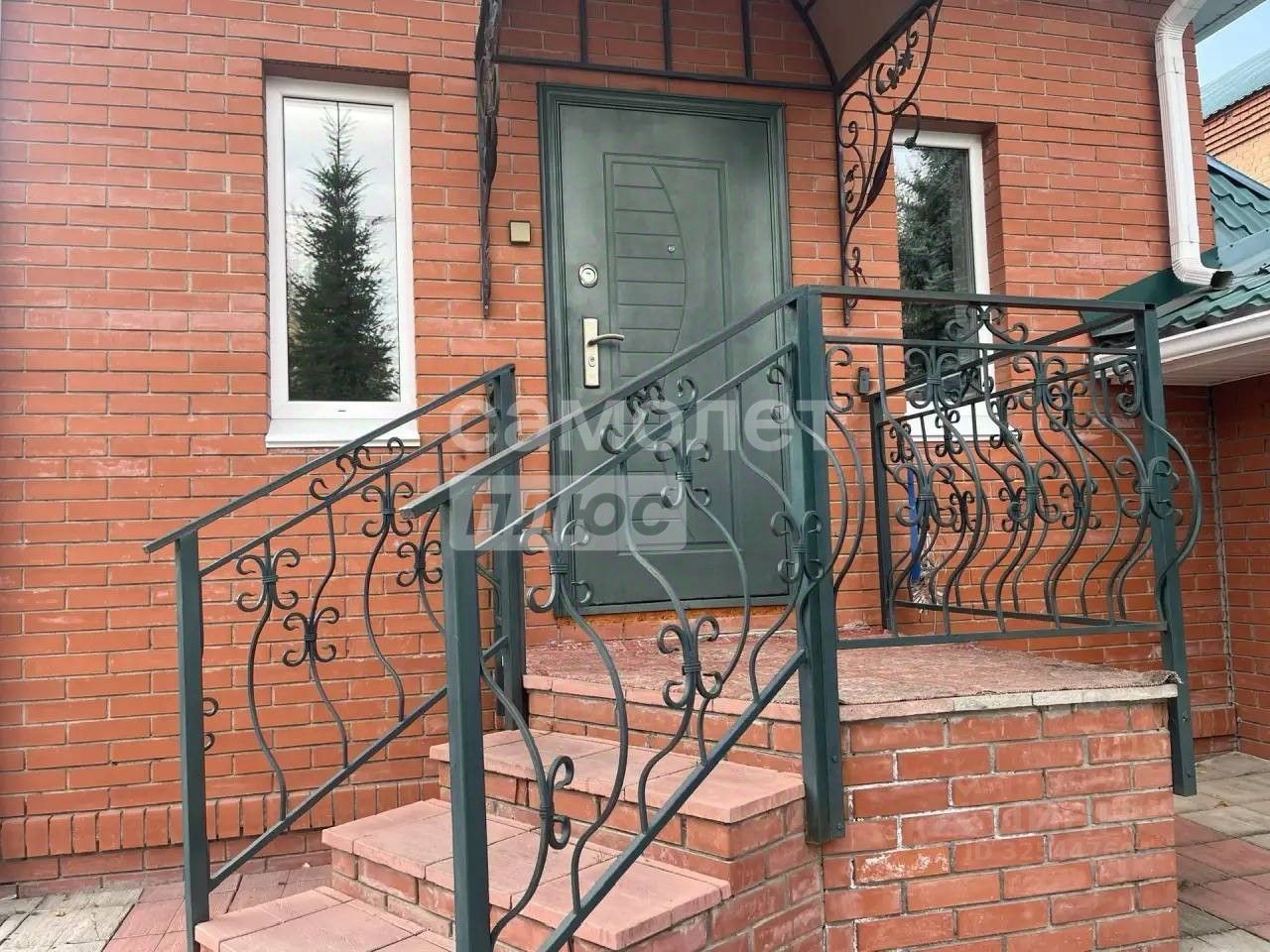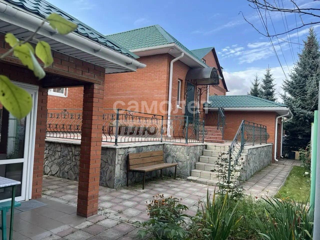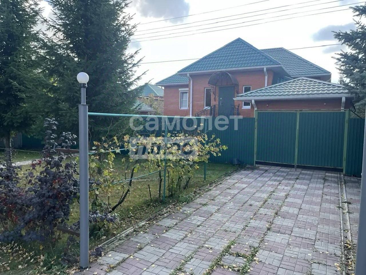 Фасад дома кирпичный. Рядом с домом расположен просторный отапливаемый гараж на две машины, отделанный в том же стиле, что и основное здание.
