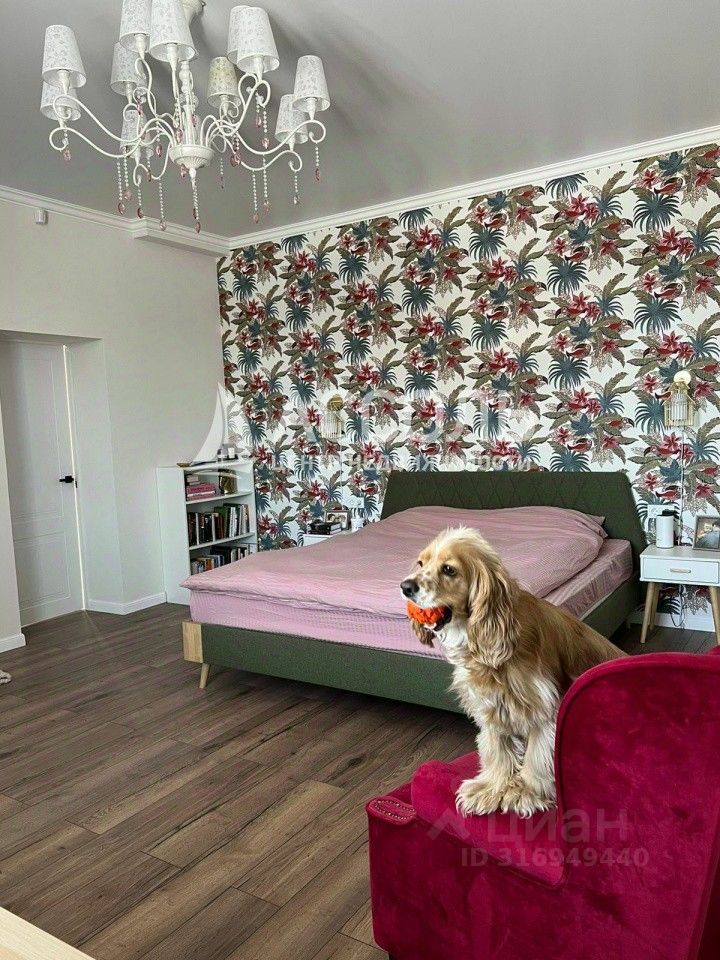 5 спален, 2 санузла, гостинная с камином, столовая, гардеробная.