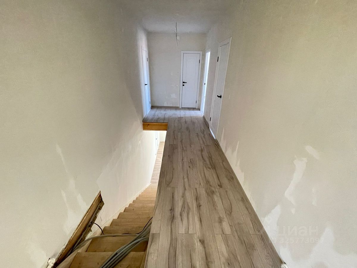 Отделочные работы на финальной стадии: завершается косметический ремонт, установлены натяжные потолки, будут установлены межкомнатные двери и сантехника. На первом этаже сделан теплый пол.