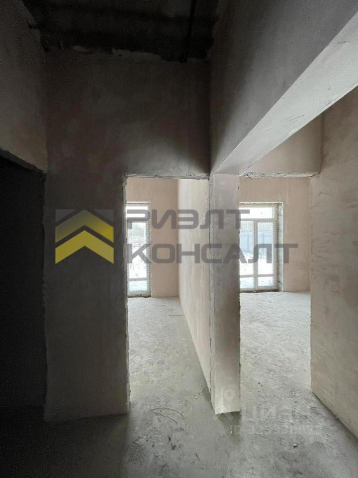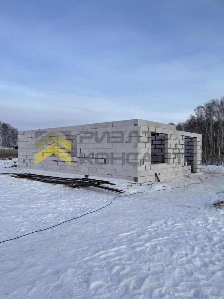 Дом, построенный в 2025 году, представляет собой одноэтажное строение площадью 82 квадратных метра на участке размером 6.4 сотки. Стены выполнены из газобетонных блоков, утеплены снаружи пенополистиролом и отделаны мраморной крошкой на полимерной основе. Внутренняя отделка черновая, имеется четыре комнаты, санузел расположен внутри дома.