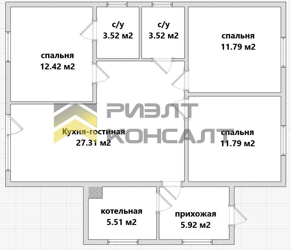 Общая площадь: 82 кв.м.