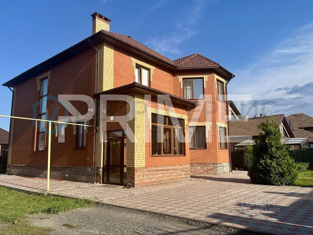 Просторный двухэтажный кирпичный дом, идеально подходящий для комфортного проживания.