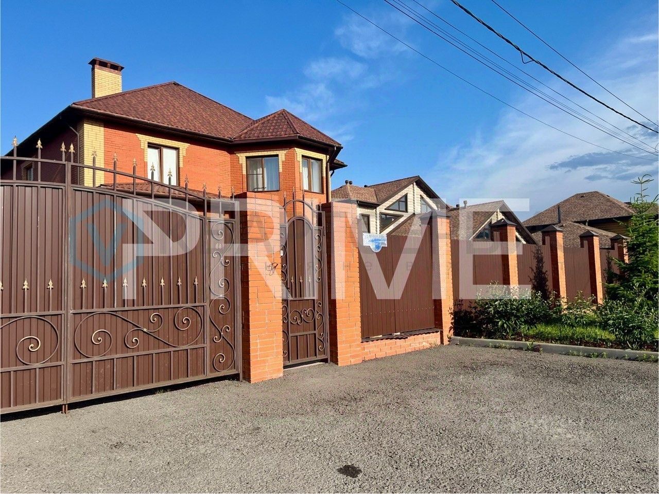 Дом построен из качественного кирпича и оснащен современными системами: теплый пол на 1 этаже, видеонаблюдение, система охраны, есть выводы для системы кондиционирования, газовое отопление и резервный электрический котел. Все коммуникации — электричество, газ, вода, канализация — центральные. Придомовая территория выложена плиткой, предусмотрена площадка для парковки автомобилей.