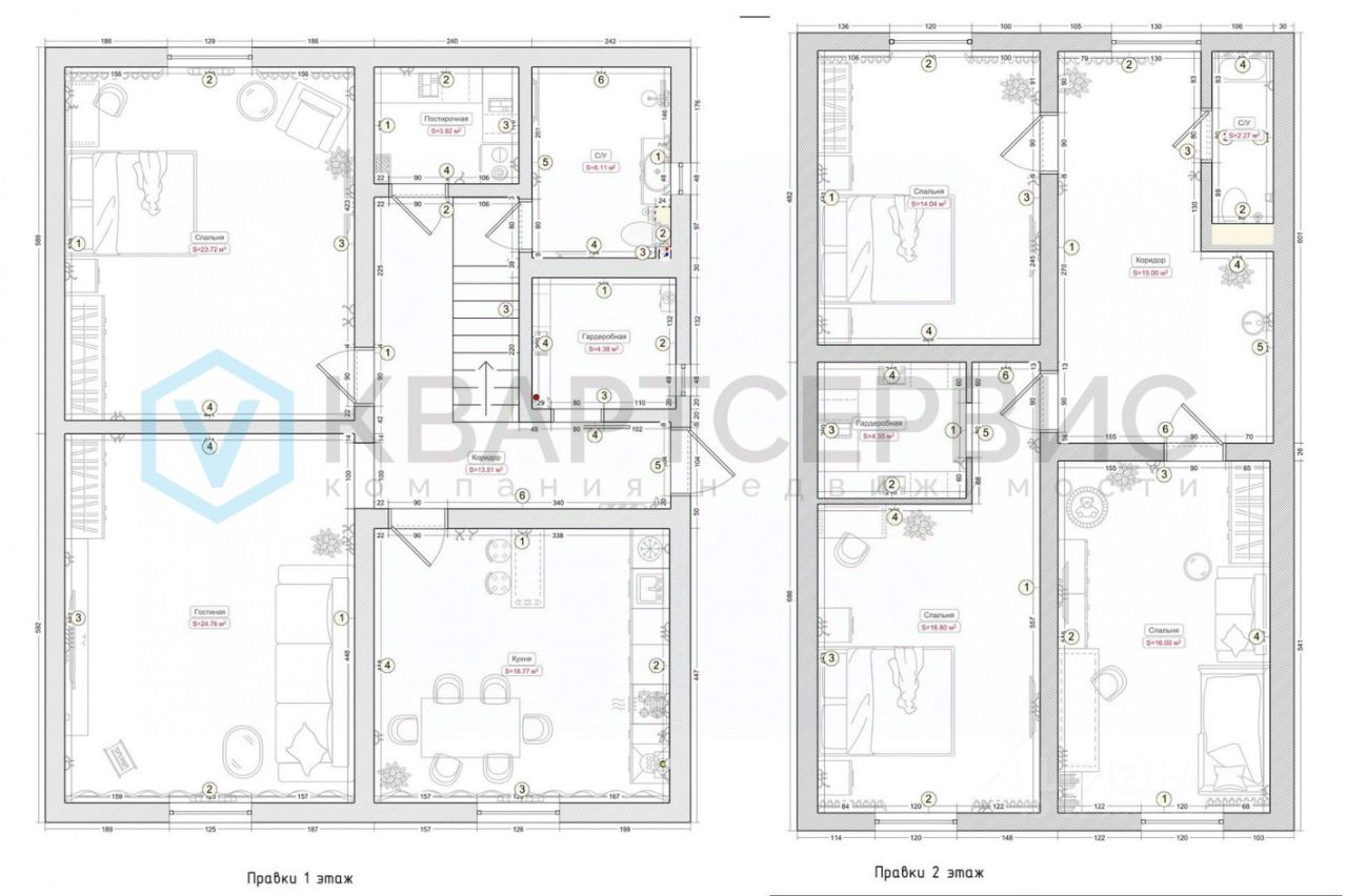 Планировка: выделено 5 жилых комнат (четыре спальни (одна со своей гардеробной) и гостиная) , отдельная вместительная кухня - место сбора всей семьи, просторный совмещенный санузел со своим окном (1этаж), дополнительный санузел (2 этаж) , котельная, постирочная. Комнаты просторные, правильной формы, высокие потолки. Удобная лестница между этажами.