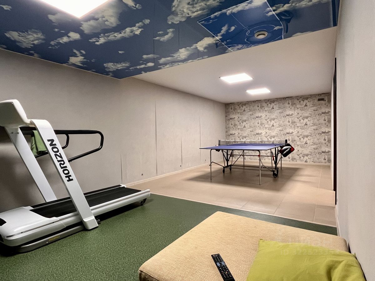 - Цокольный этаж: комната отдыха, санузел с душевой, прачечная, гардеробная и зона хранения.