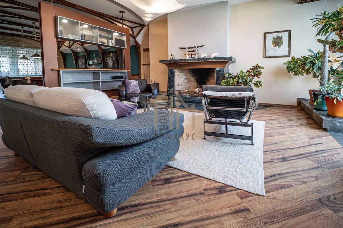Таунхаус выполнен в уникальном архитектурном решении с дорогостоящим ремонтом только из импортных материалов. Функциональная планировка продумана до мелочей: на первом этаже расположены просторная гостиная, каминный зал, бильярдная с выходом на теплый балкон, зимний сад, кухня-столовая, уютная гостевая комната и современный санузел. На втором этаже находятся две комнаты, открытая терраса, два санузла, кабинет и гардеробная, которые при необходимости могут быть преобразованы в дополнительные спальни.