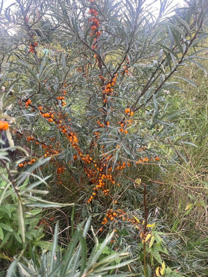 На участке есть плодоносящие саженцы облепихи, других насаждений почти нет.