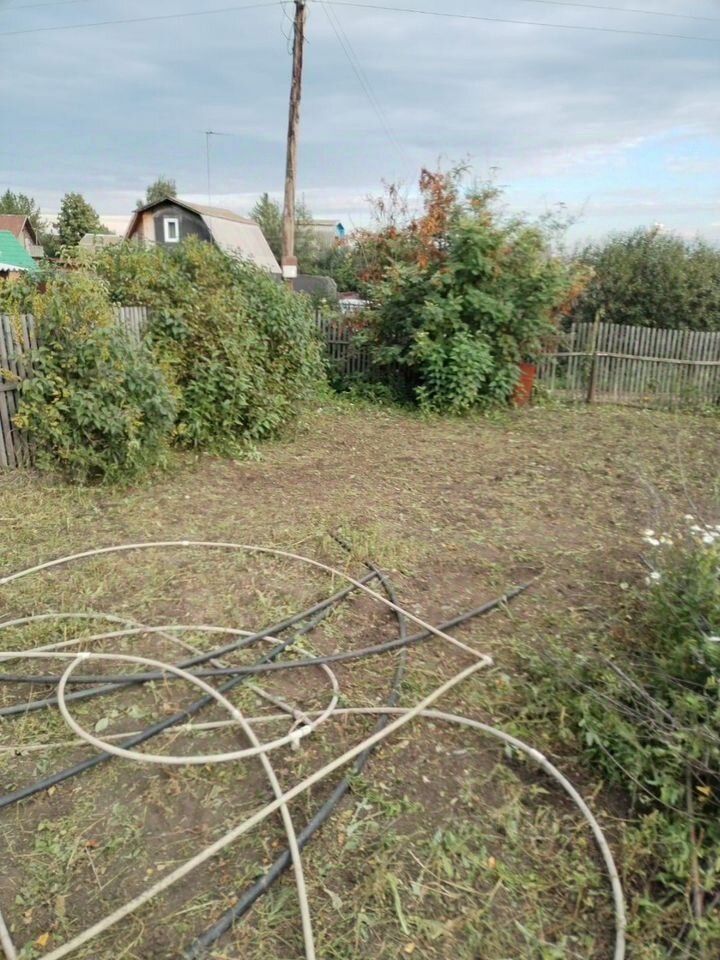 Земельный участок 4 сотки. Ухожен. Хозпостройки. Ограждение штакетник. В настоящее время используется под картофель.