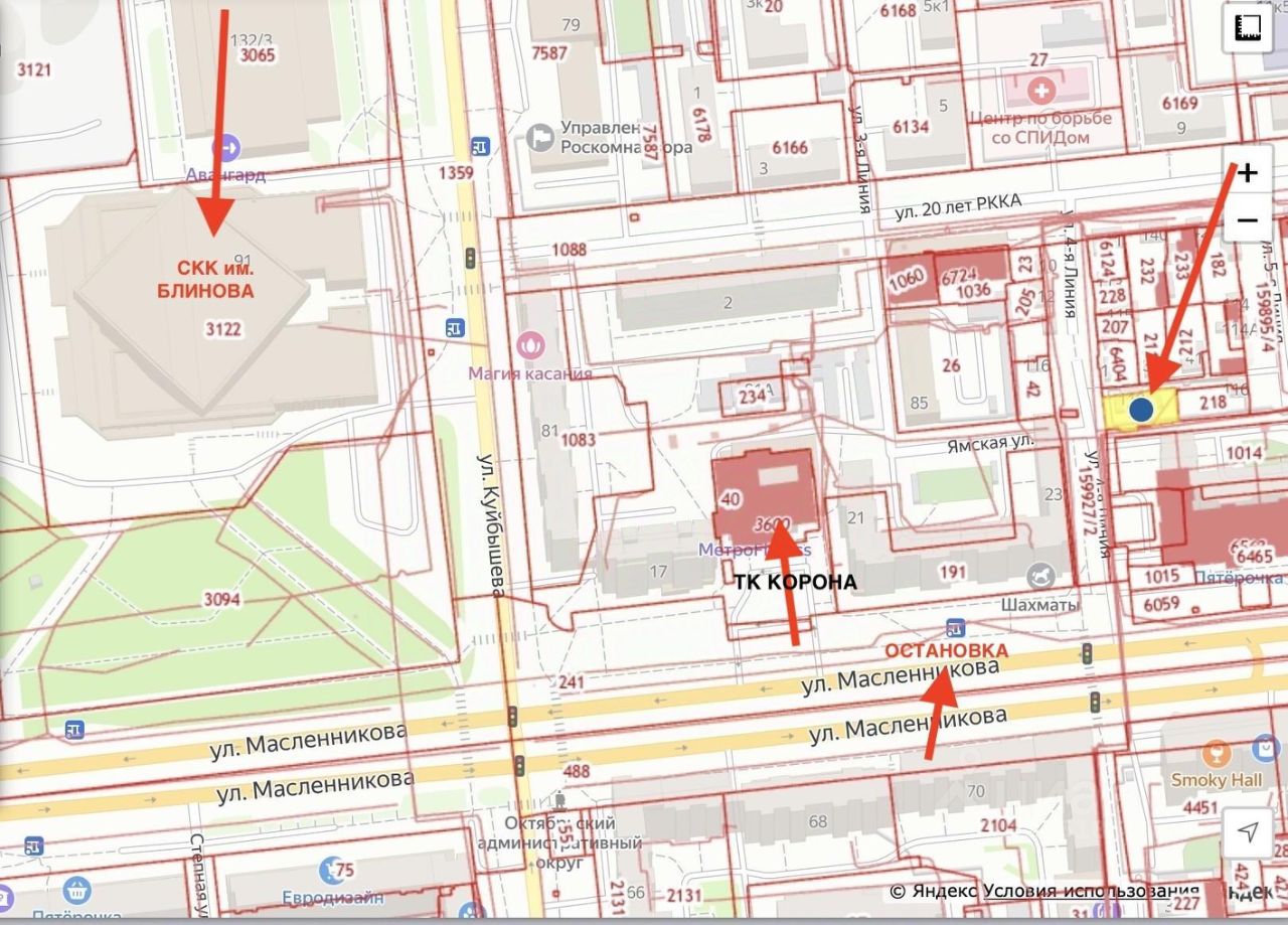В центре города. В районе СКК им. Блинова продаем земельный участок площадью 4,6 сотки под ижс. Межевание проведено. Торг уместен.