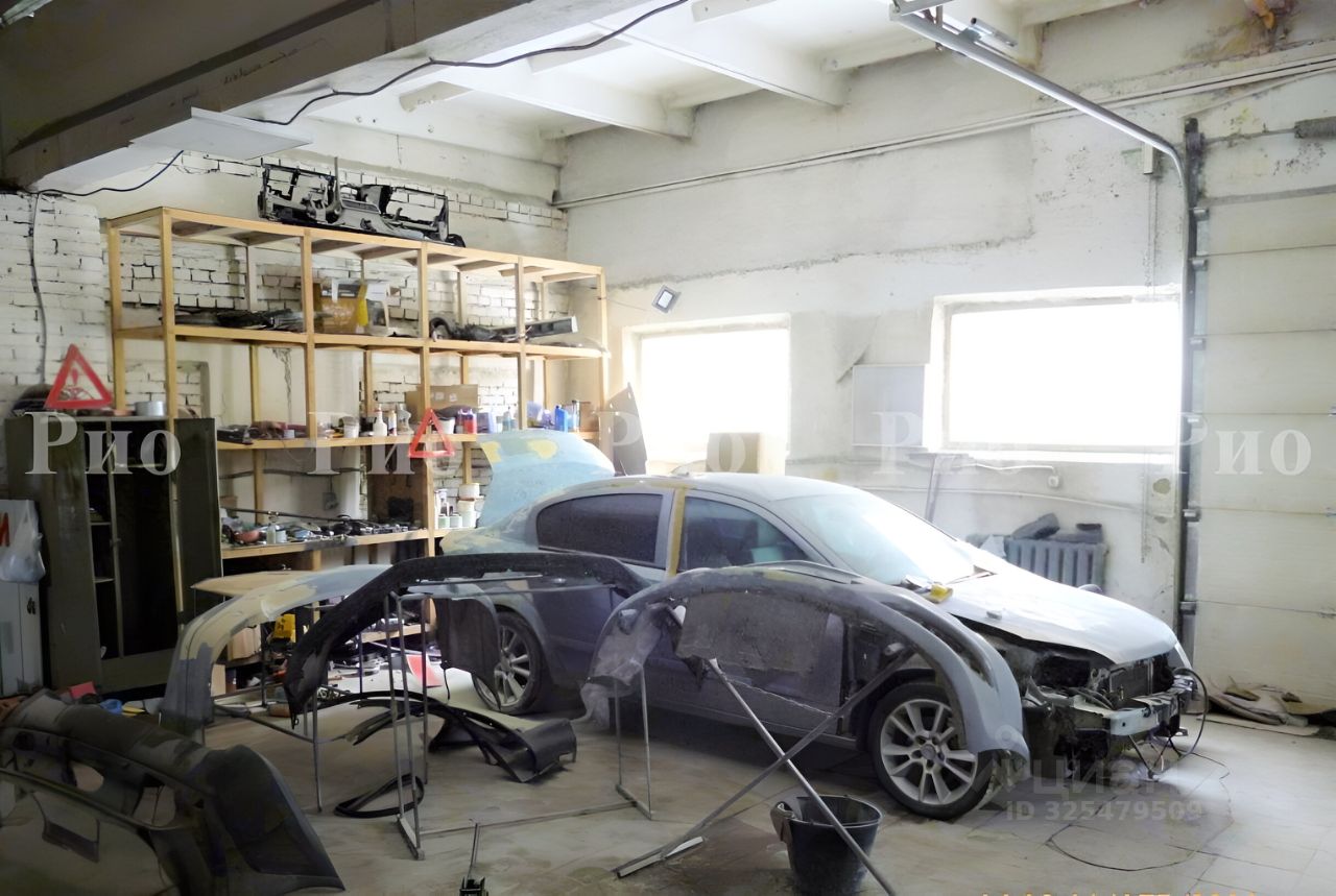Отдельно стоящее здание из двух боксов по 200 кв метров каждый, действующий автосервис с арендаторами, отдельно стоящее офисное помещение со складом 70 кв метров, несколько хозяйственных подсобных помещений. Огороженная асфальтированнная стоянка на 70 автомобилей 50 соток, двое вьездных ворот.