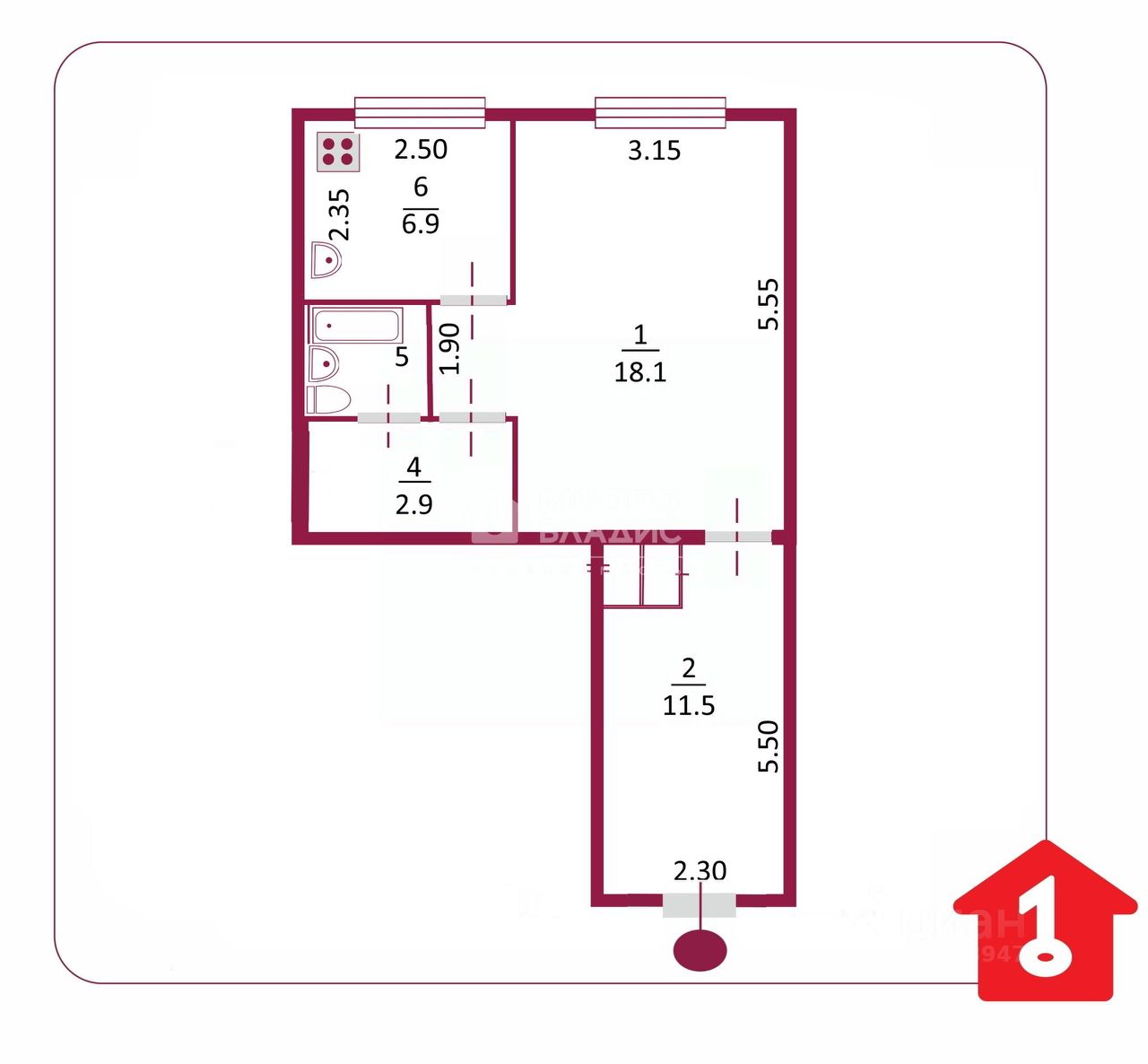 Общая площадь 42,0 кв.м.