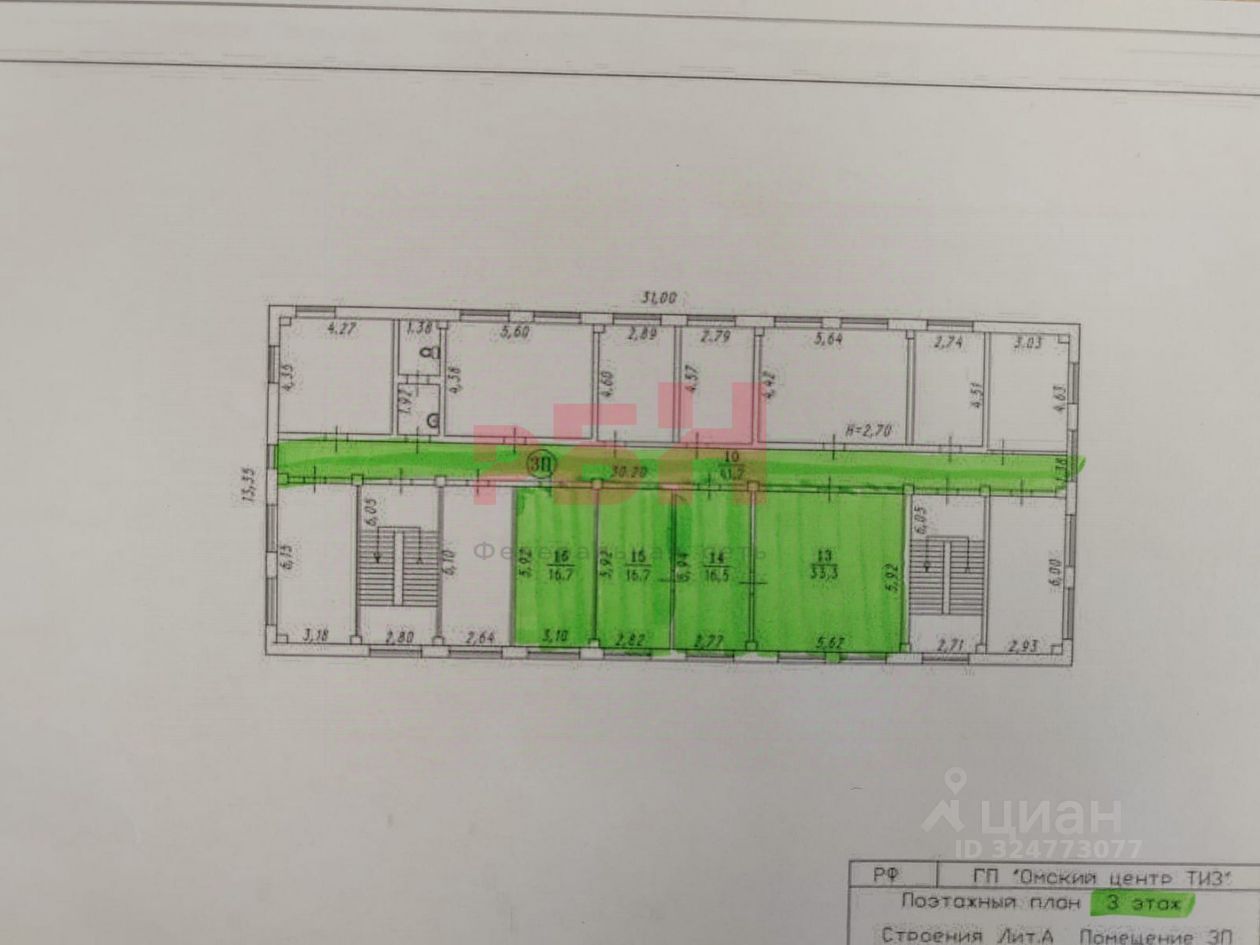 3- этаж -304,6 м2, в т.ч. МОП: 41,7м2 коридор